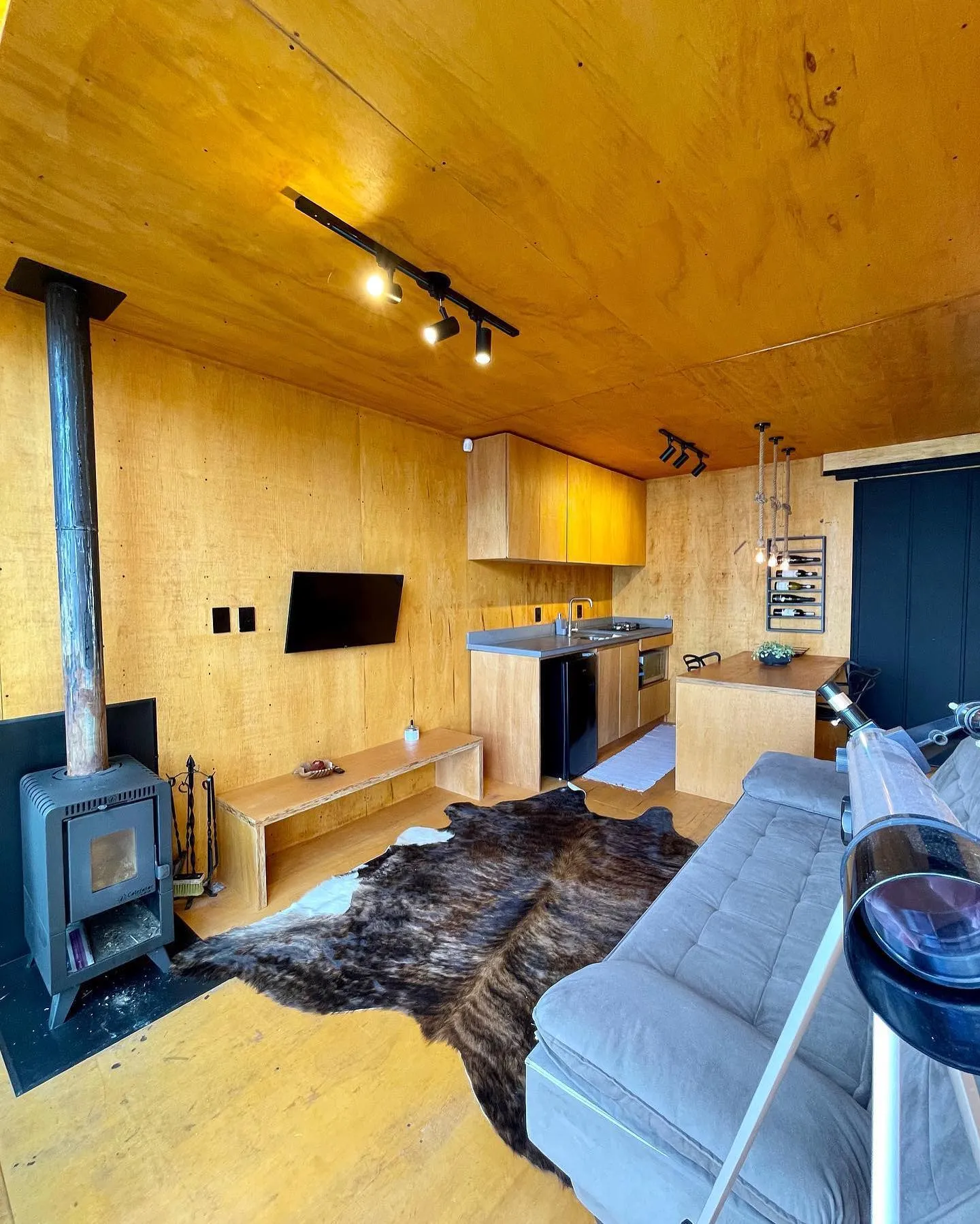 Todas as acomodações possuem cozinha completa com utensílios e uma mini geladeira abastecida com piz