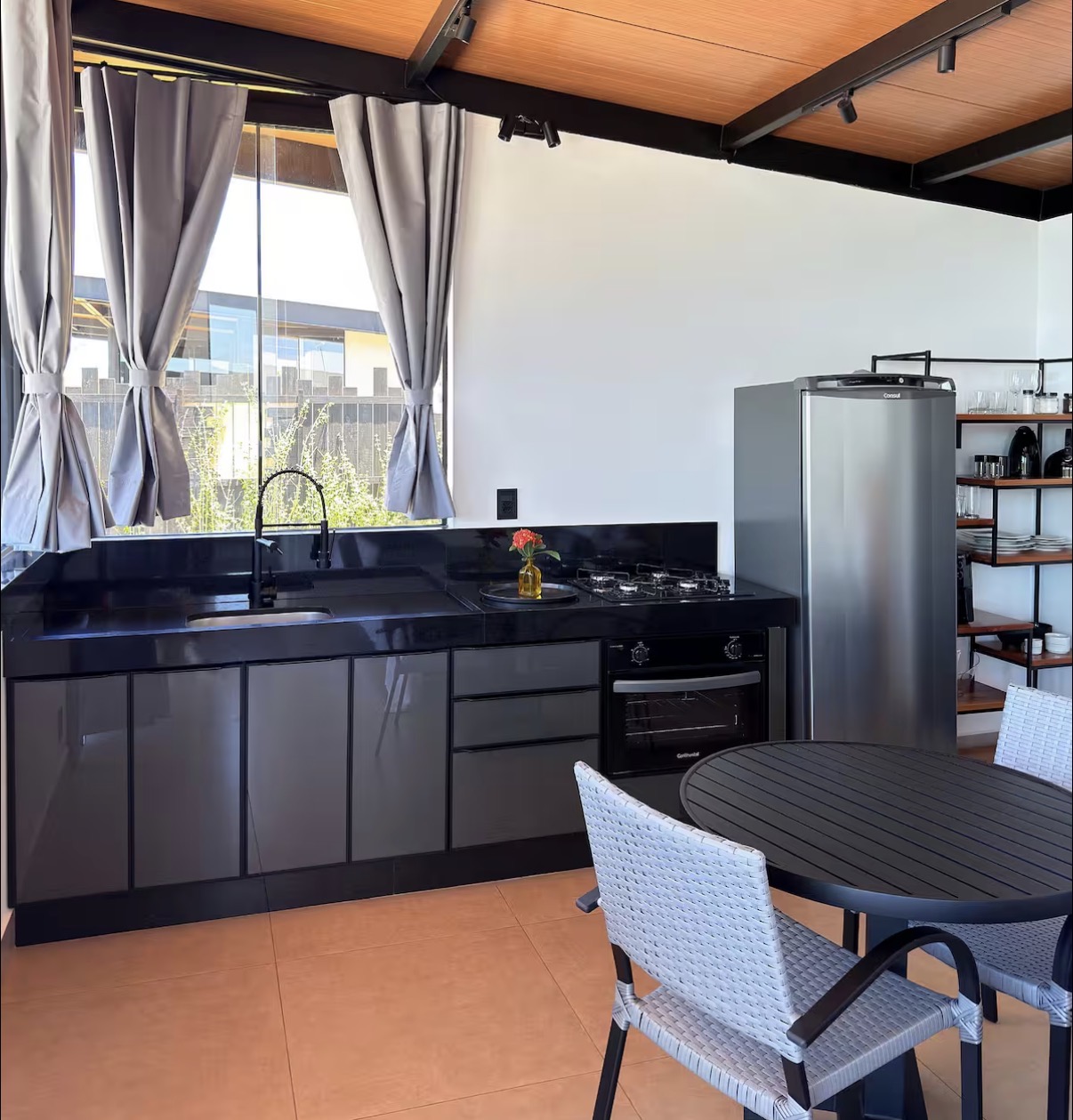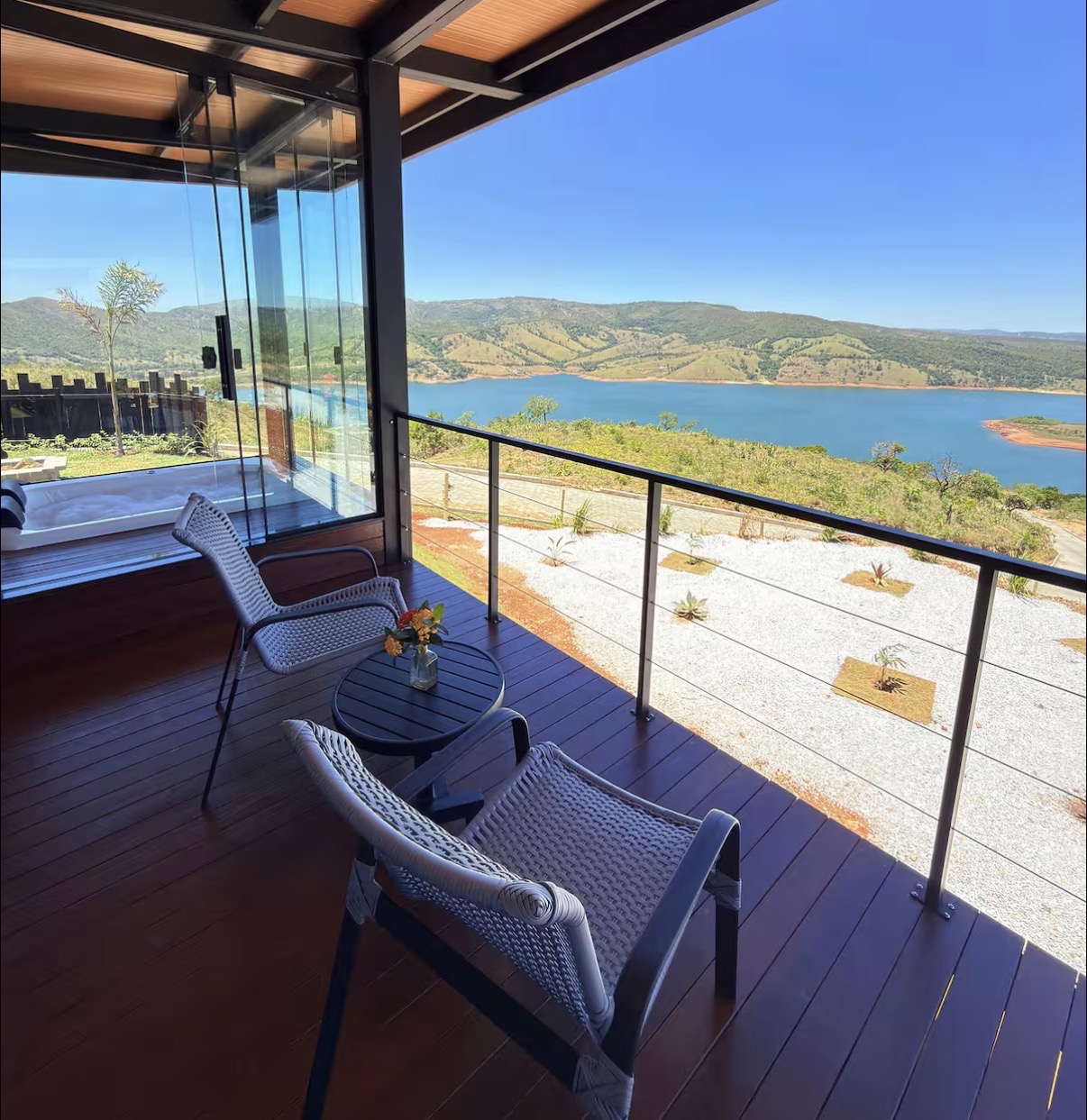 A hospedagem oferece áreas externas convidativas, como fogo de chão e espaços perfeitos para momentos especiais a dois. Cada detalhe valoriza o romantismo, o bem-estar e a conexão com o ambiente natural, proporcionando uma experiência completa marcada por charme, tranquilidade e exclusividade.