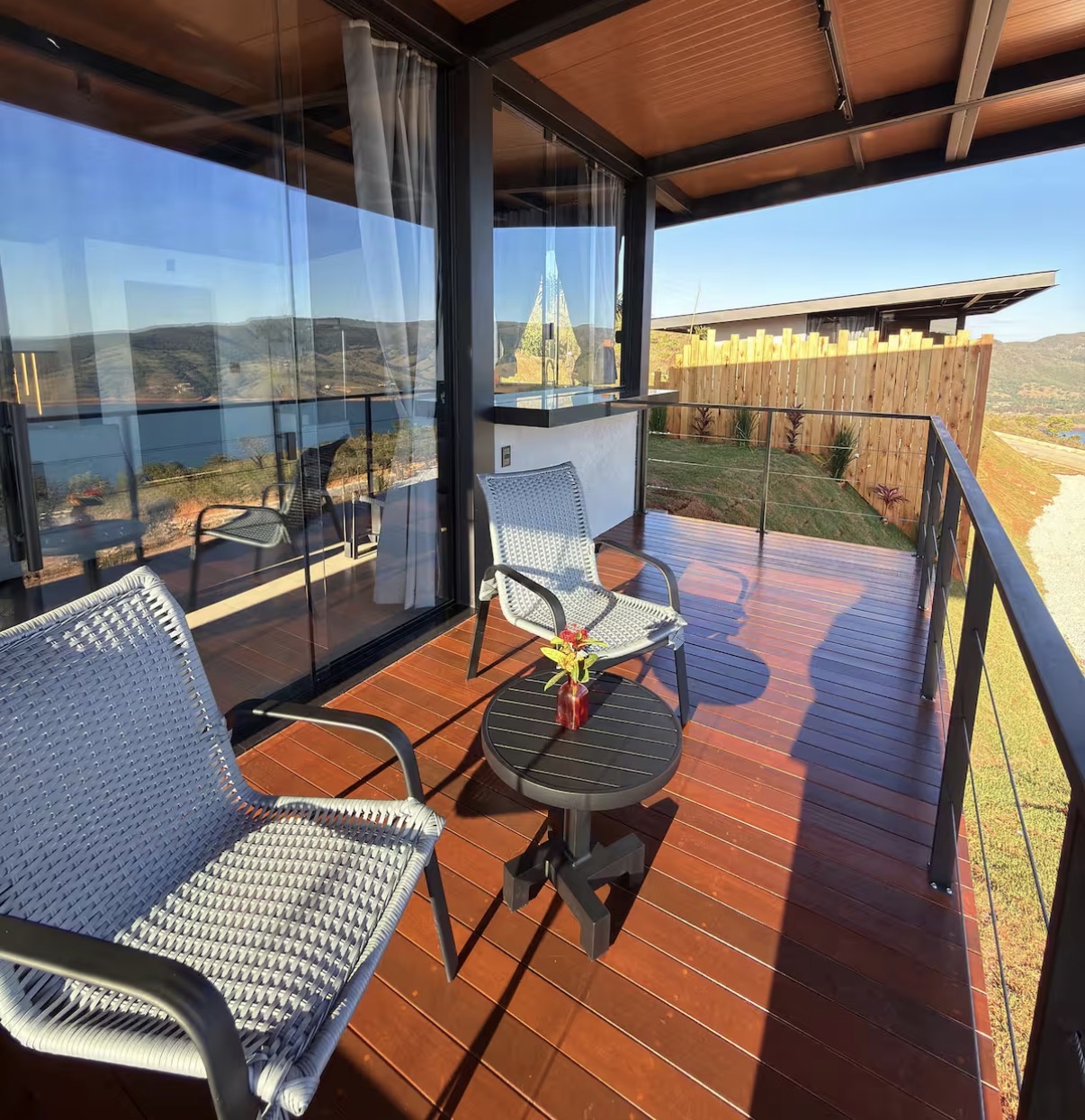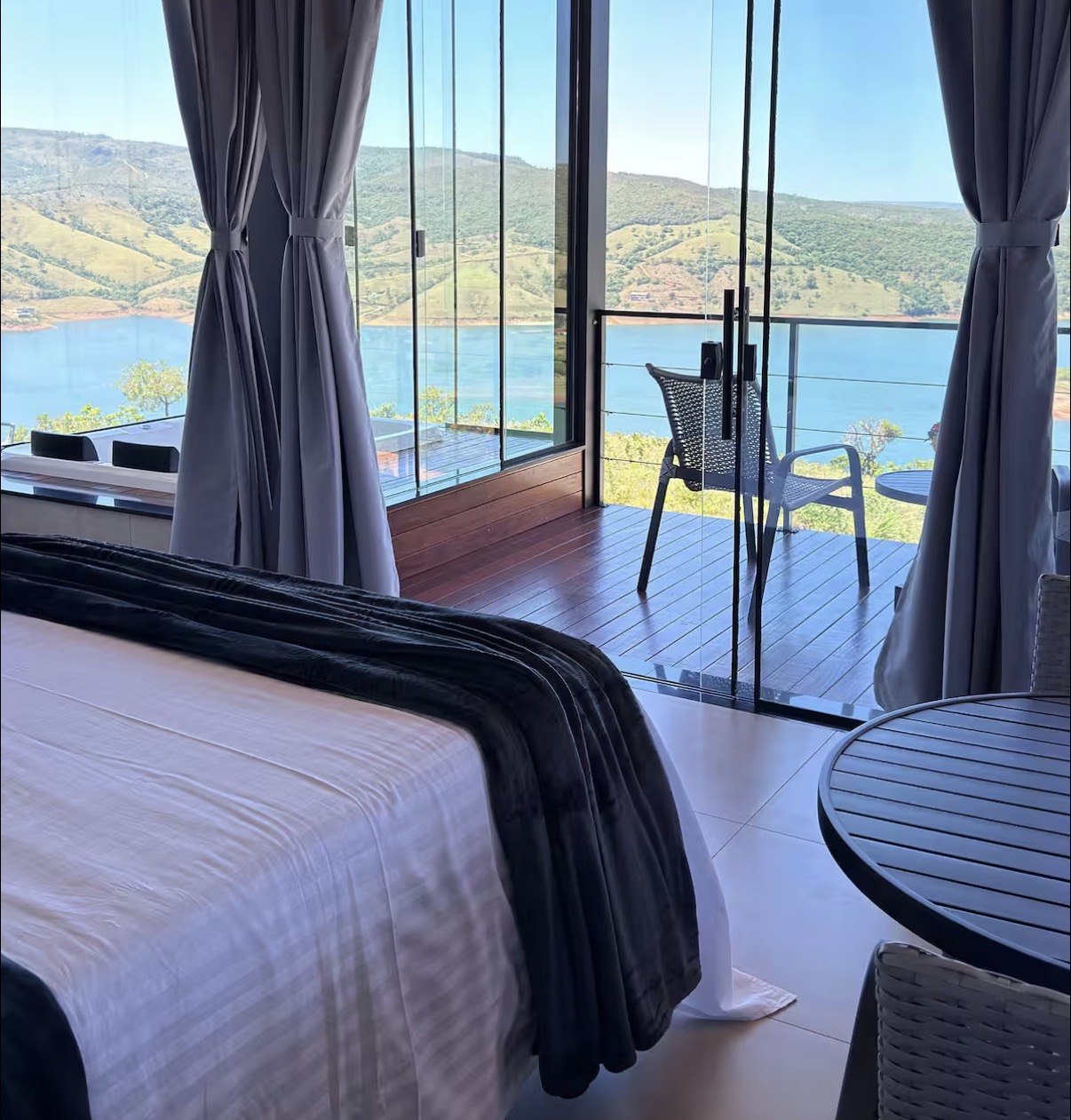 Este chalé foi projetado exclusivamente para adultos e combina arquitetura moderna com vistas amplas para a natureza. A hidromassagem integrada com fechamento em vidro, o deck panorâmico, a churrasqueira e a cozinha completa criam um ambiente sofisticado e acolhedor. O enxoval de alta qualidade, o jardim e os móveis externos complementam a atmosfera de conforto e privacidade.