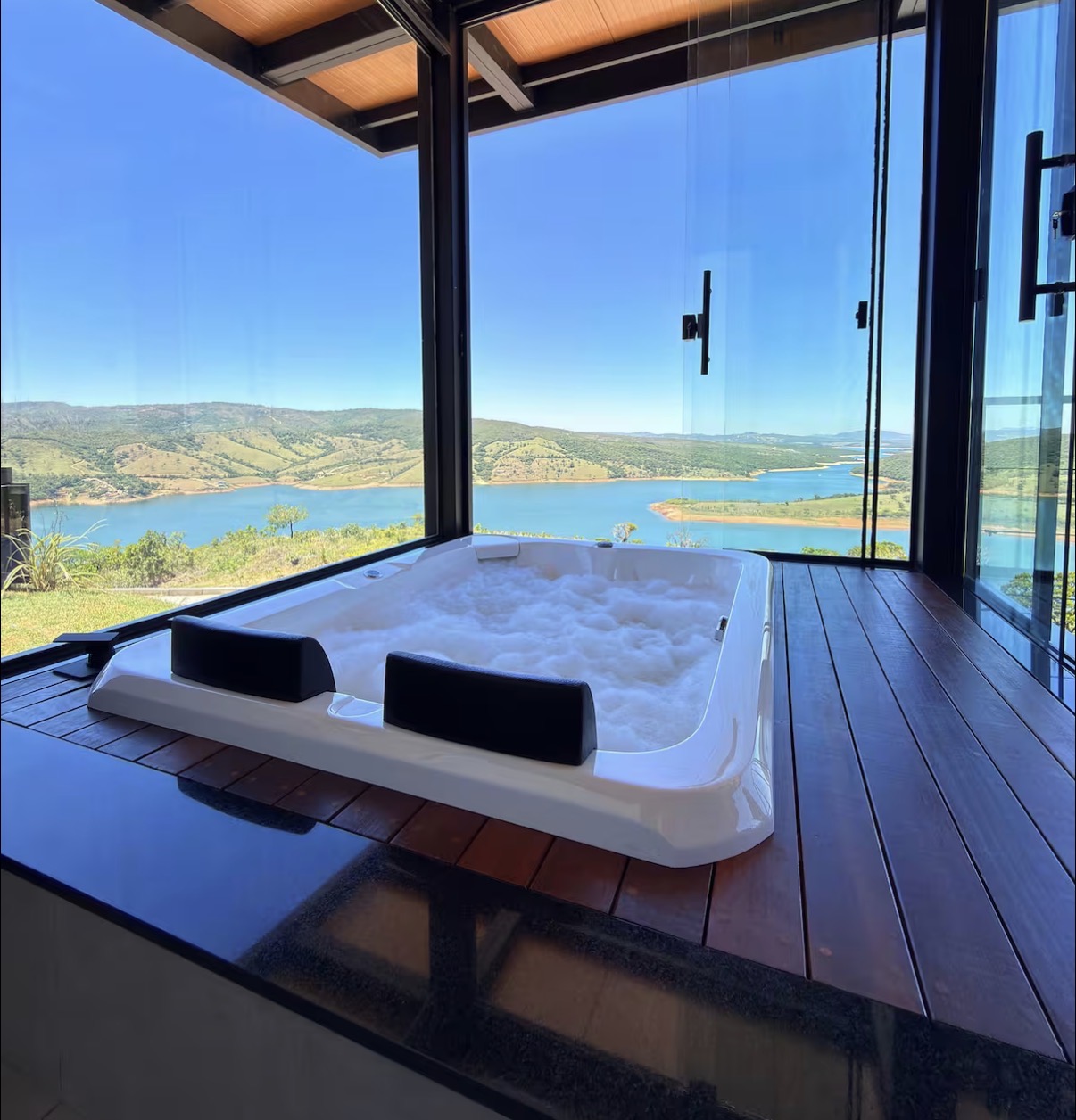 Ar condicionado Secador de cabelo TV a cabo / Smart TV Jacuzzi / Ofurô / Banheira Coberta Frigobar Lareira Máquina de Café Enxoval de Luxo (+ Roupão e Pantufa) Sauna Cozinha Estação de trabalho (mesa e cadeira) Piscina Aquecida ou climatizada Borda Infinita Coberta