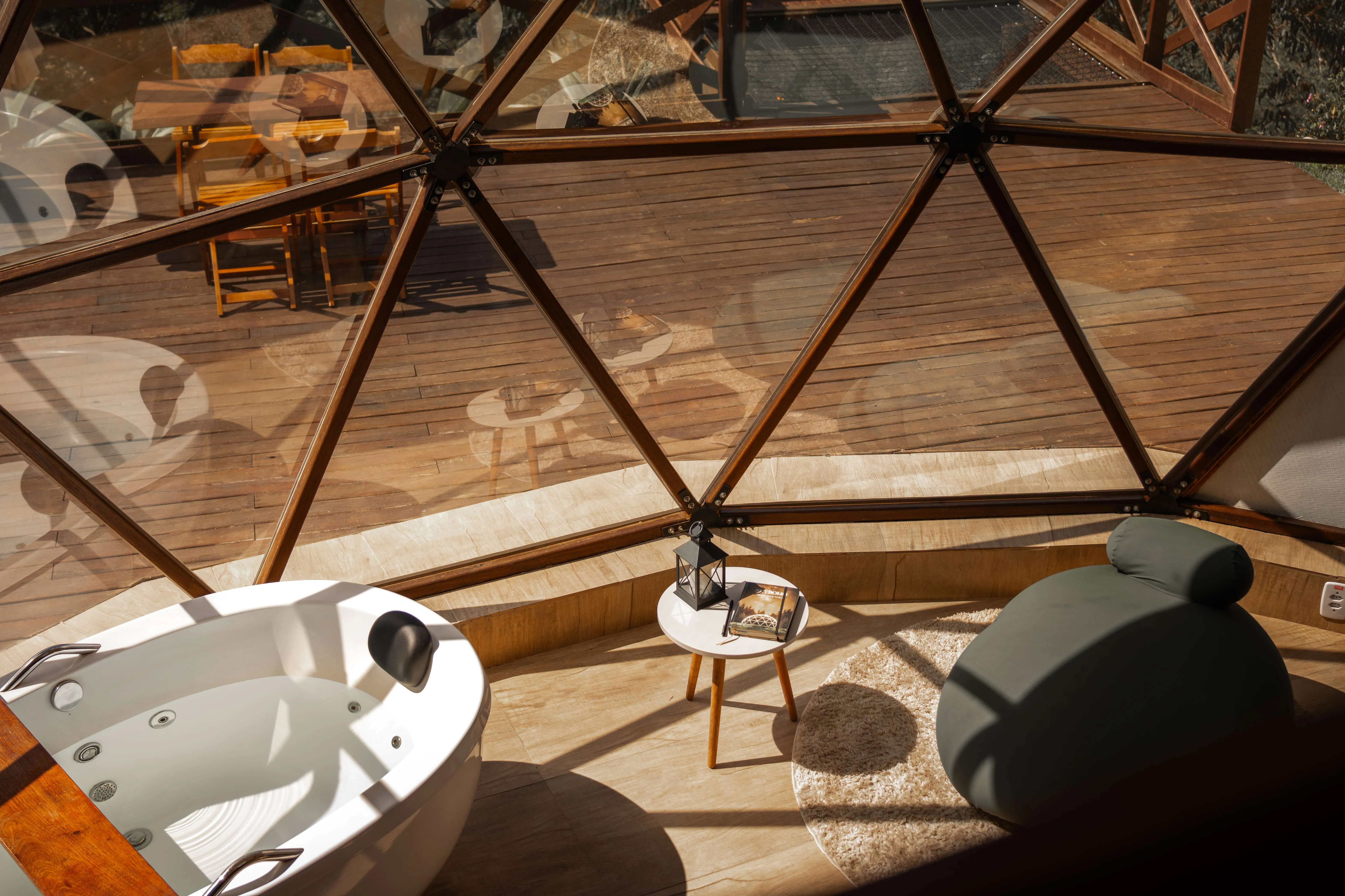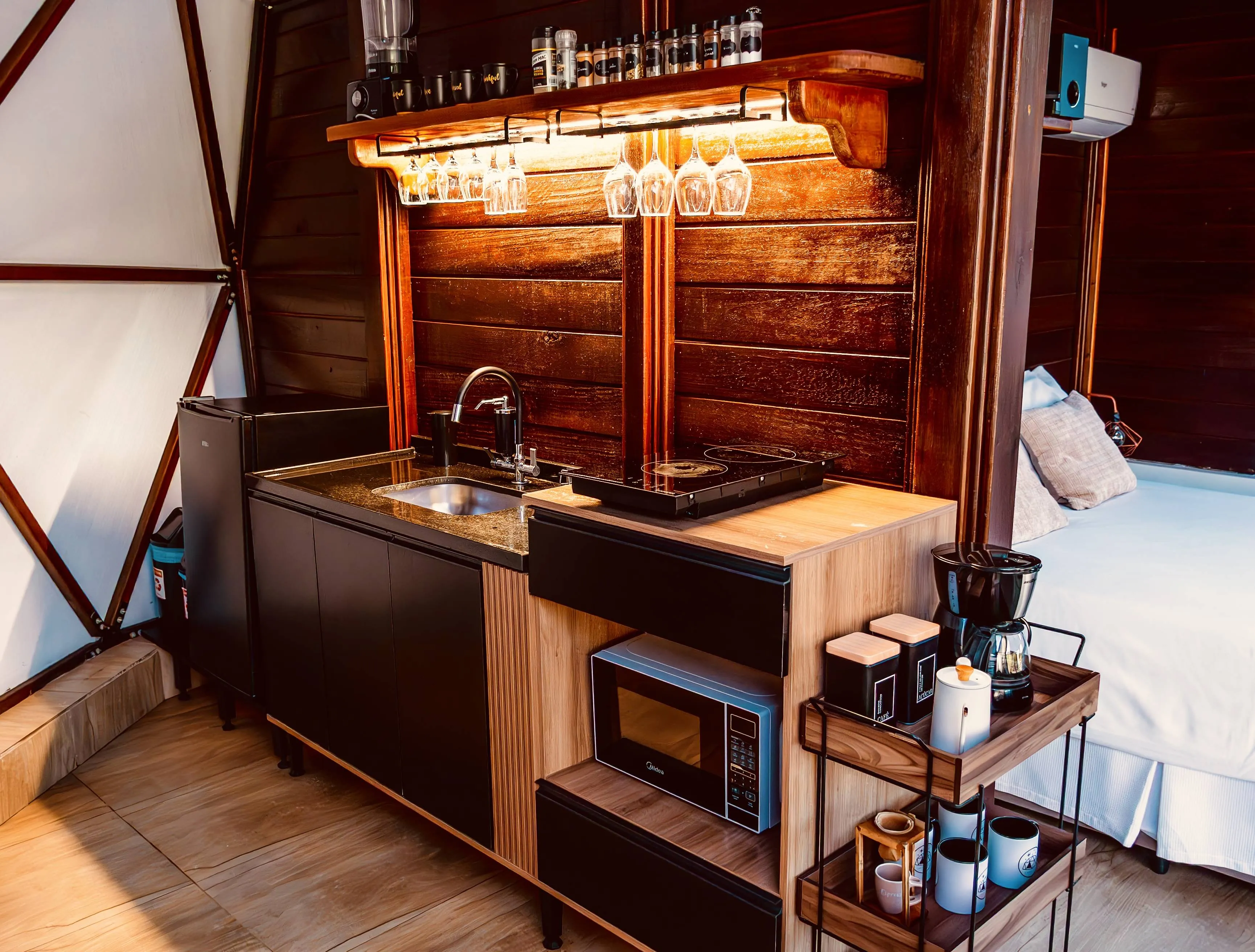 Refúgio único em Salesópolis, o glamping é uma experiência como nenhuma outra, oferecendo o equilíbrio perfeito entre aventura e relaxamento. Aqui estão os detalhes que tornam a acomodação especial: Localização incrível, perto do Parque Nascentes do Rio Tietê, proporcionando imersão em paisagens deslumbrantes e cachoeiras. Possibilidade de dormir sob as estrelas com a claraboia transparente. Desfrute de uma fogueira e deck privativos para criar momentos e histórias em um ambiente único. A natureza intocada oferece uma cascata privativa e uma rede suspensa, além de uma cozinha equipada para garantir comodidade. Aproveite o cinema em casa com projetor e tela de 150 polegadas. Relaxe na banheira de hidromassagem com cromoterapia.