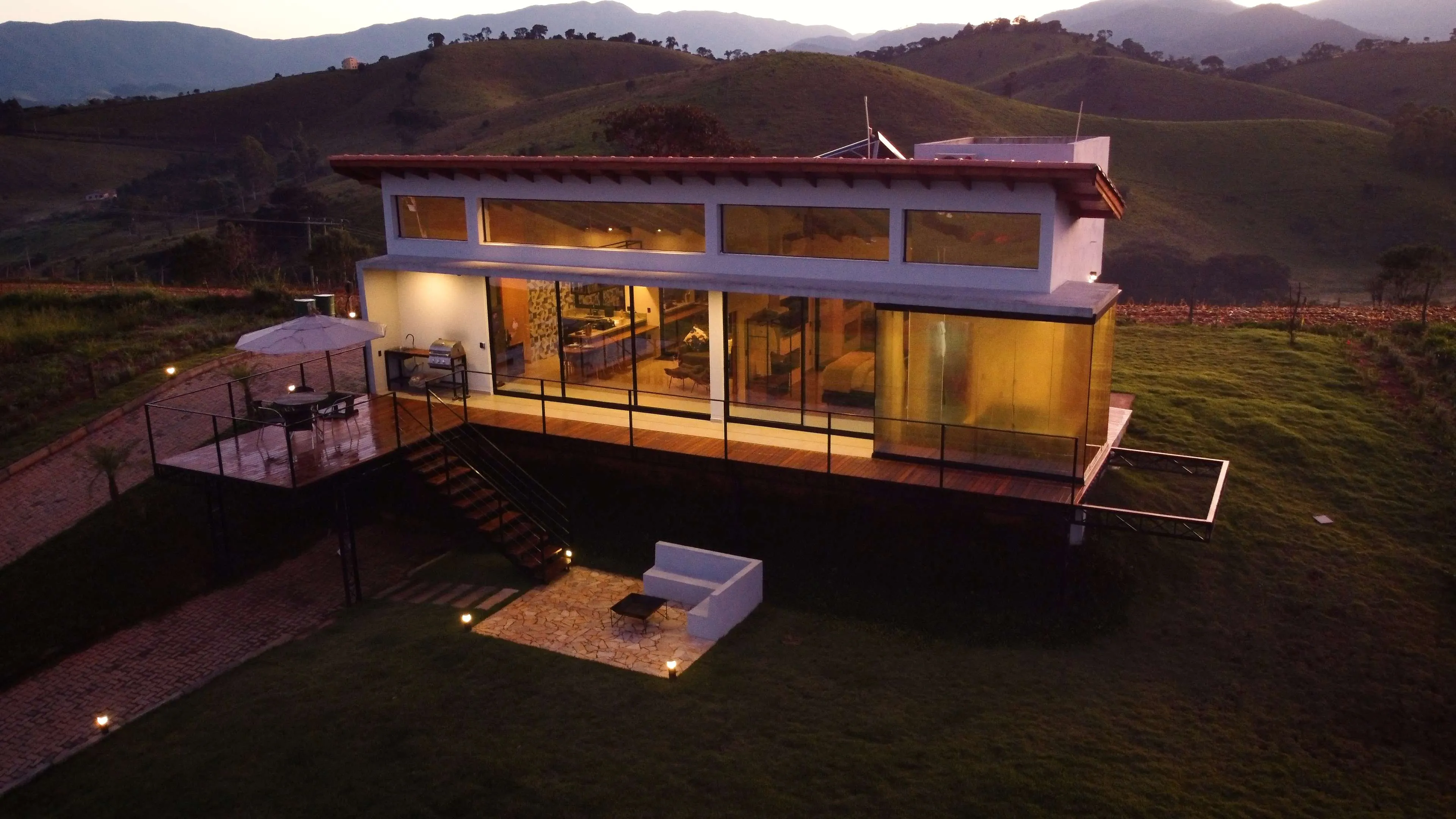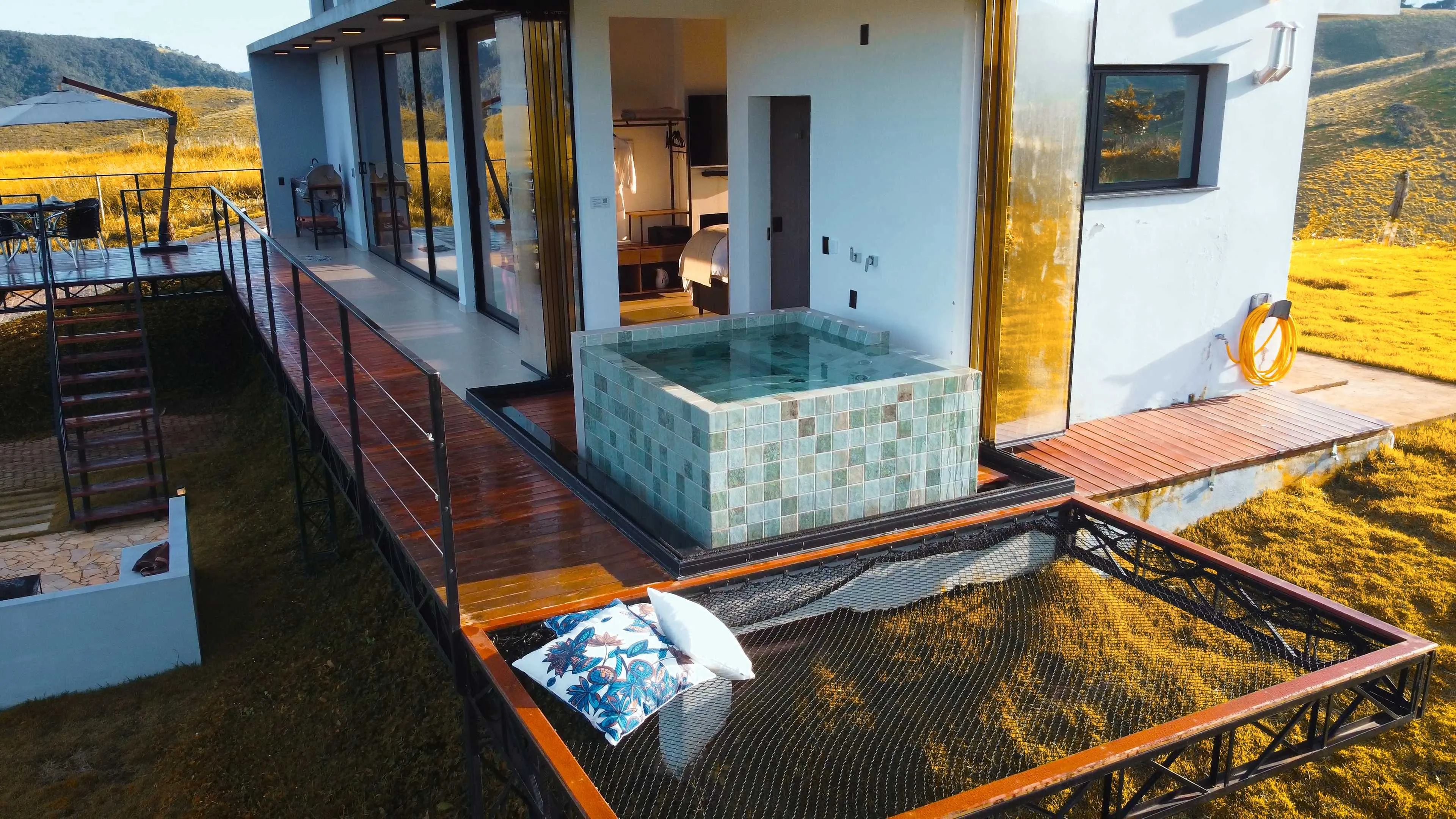 O Solarium Mantiqueira é um refúgio contemporâneo na Serra da Mantiqueira, perfeito para quem busca conforto, design moderno e tecnologia. Conta com SPA de bordas infinitas controlado por comandos de voz, camas king size, enxoval exclusivo, cozinhas completas com área gourmet e churrasqueira, além de área gramada privativa. A estrutura inclui aquecimento central pelo piso, persianas motorizadas e vidros inteligentes que oferecem vistas panorâmicas ou total privacidade. Um cinema interno/externo proporciona momentos de lazer inesquecíveis. Combinando inovação e a beleza natural da região, o Solarium Mantiqueira oferece uma experiência única e exclusiva.