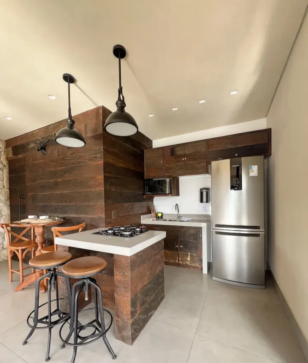 Localizado no distrito de Santa Rita de Ouro Preto, à beira da represa do Tabuão. Com dois banheiros, um deles equipado com uma hidromassagem. Piscina privativa, varanda com vista para o lago e lareira. Cozinha equipada com cooktop, geladeira, microondas, airfryer, máquina de café e utensílios completos, permite a preparação de deliciosas refeições. Por favor, note que nenhuma refeição está inclusa na diária.