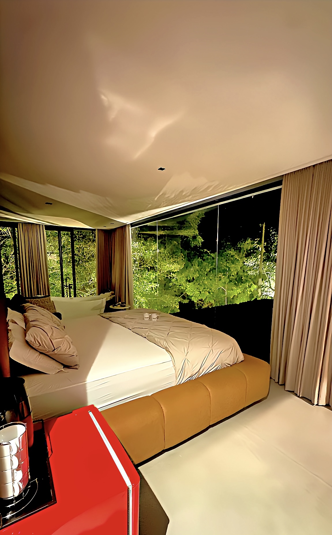 O espaço apresenta a união equilibrada entre luxo e natureza, com arquitetura em vidro que valoriza o entorno e integra a vista do rio e a luz natural aos ambientes internos. Cada detalhe foi cuidadosamente planejado para proporcionar sensação de imersão na paisagem, mantendo conforto e privacidade, enquanto o som das águas e a riqueza dos acabamentos compõem um cenário sofisticado e acolhedor, ideal para criar memórias marcantes.