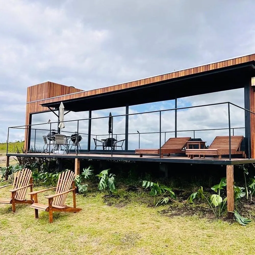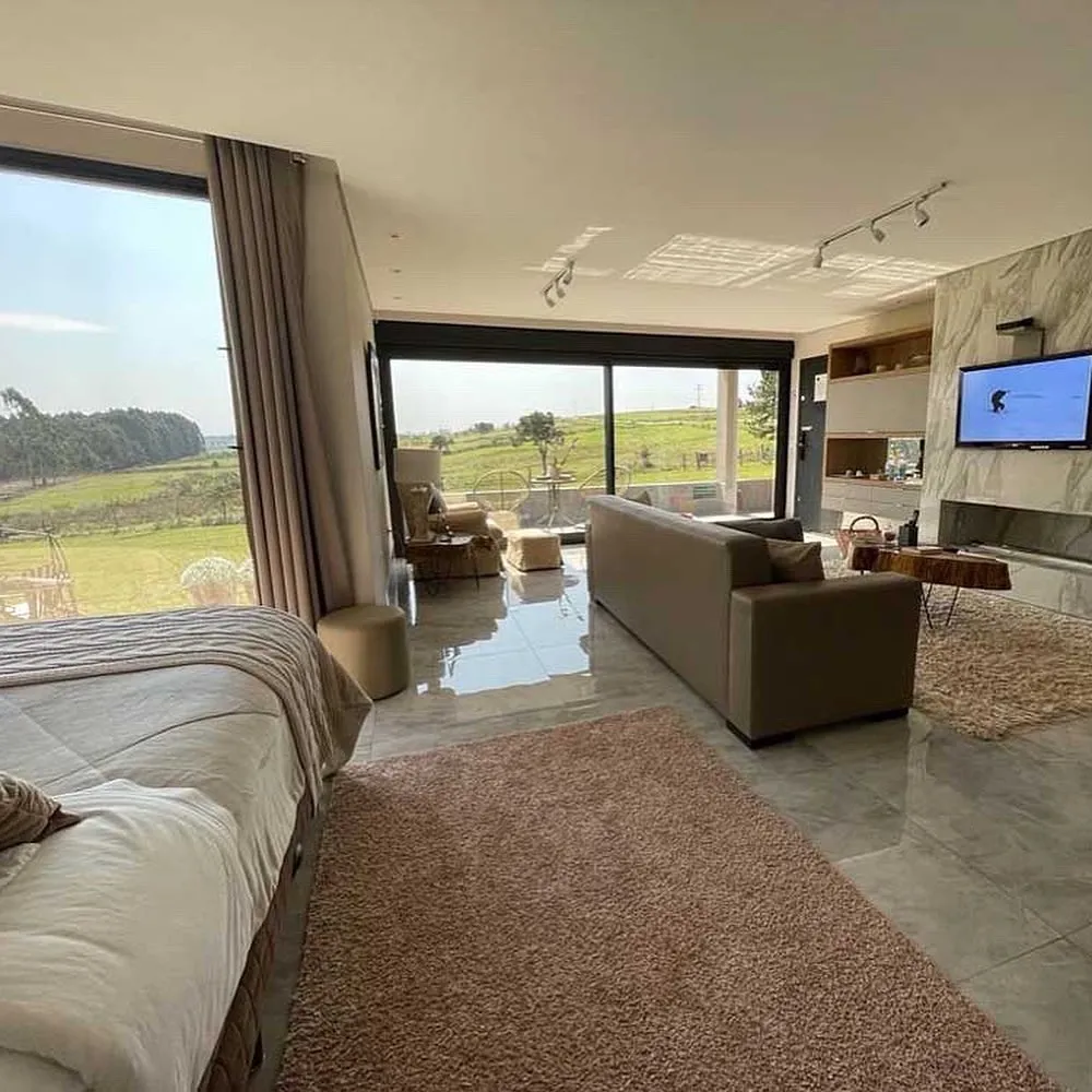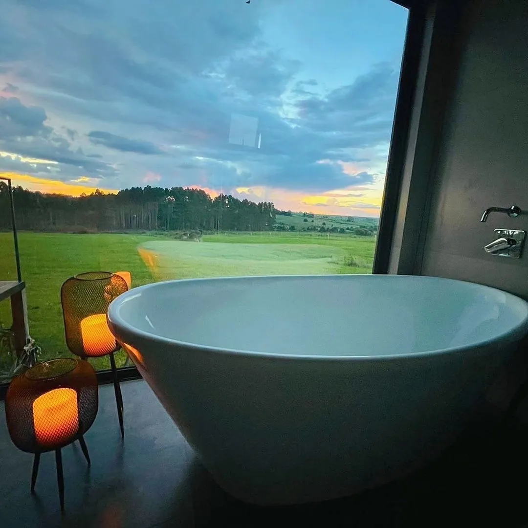 Equipados com cozinha completa (cooktop, micro-ondas, forno elétrico e refrigerador), lareira a álcool, chuveiro a gás, ar-condicionado quente/frio, cama king-size e banheiros espaçosos com banheira de imersão, garantem momentos de relaxamento e tranquilidade. O espaço ainda conta com um sofá-cama opcional, perfeito para acomodar famílias ou amigos com comodidade.