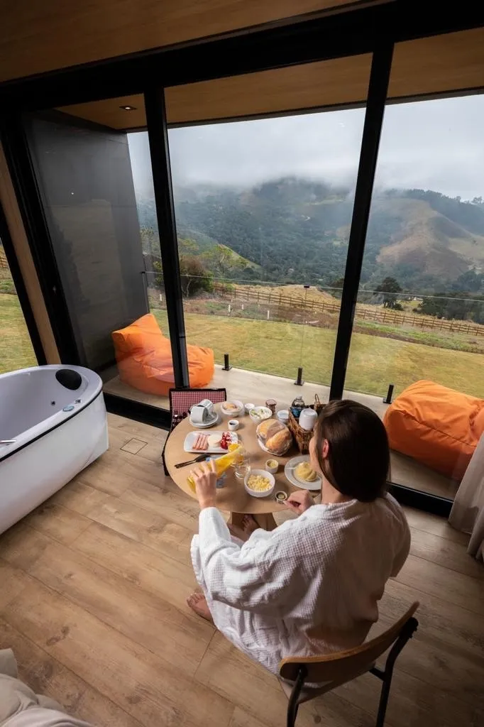 Aqui é possível passar alguns dias em chalés glamourosos, que misturam design moderno e sustentável com conforto e aconchego, em meio a um verdadeiro santuário da natureza.