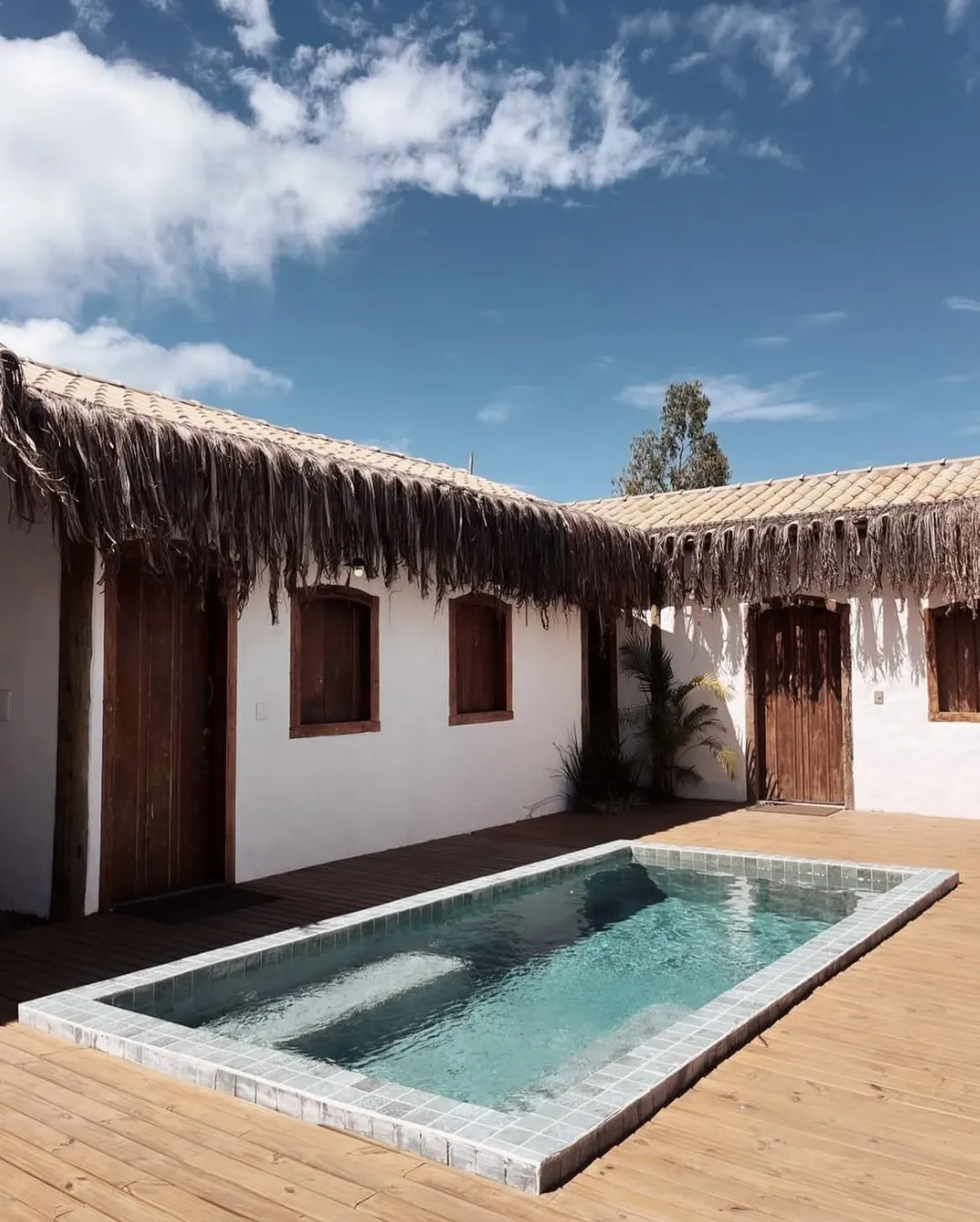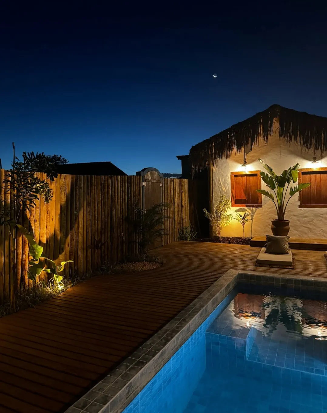 Além da casa, a vila oferece 4 bangalôs independentes, todos com cozinha privativa e acesso a uma piscina compartilhada entre eles — perfeitos para quem busca praticidade, charme e aconchego.