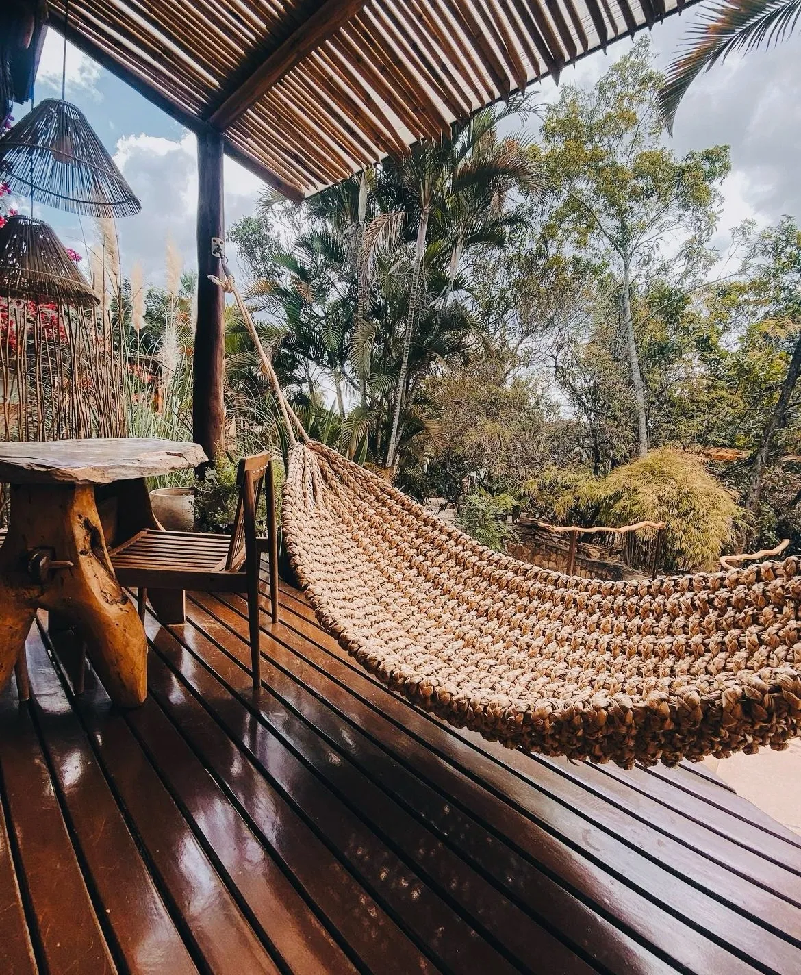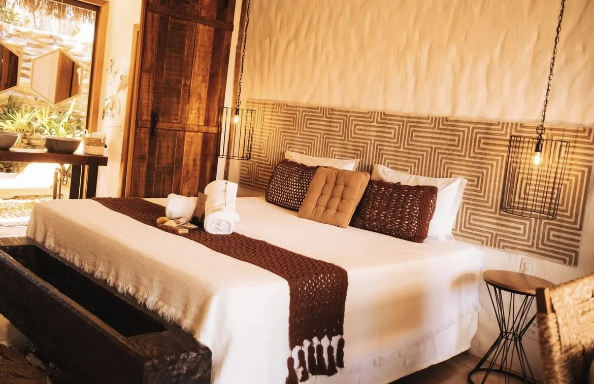 Uma vila charmosa e sustentável, que traz um novo conceito de hospedagem, inspirado no hotel casa, proporcionando uma estadia mais autêntica e afetiva, com casas butiques devidamente equipadas e serviço de hotel para maior comodidade. Imersa e inspirada no Cerrado brasileiro, a Vila tem em sua composição casas conceito e exóticas, com 70m2, bem distribuídos, com cozinha gourmet, deck com vista para o jardim, e os mais procurados banheiros ao ar livre, com banheira de imersão esculpida em pedra natural. O café da manhã é estilo caseiro, reforçado, saudável com iguarias do cerrado e abrange todos os tipos de restrições alimentares. As casas trazem na arquitetura e design diferentes detalhes e texturas, resgatando algumas técnicas milenares inspiradas na arquitetura vernacular como o pau a pique, por exemplo, revisitando a expressão cultural dos povos nativos, os Kalungas, que construíam as próprias casas com barro e bambu. Também temos trabalhos handmades (feitos à mão), assinados por escultores, artesãos locais. Através de experiências sensoriais que afloram os cinco sentidos e proporcionam maior alinhamento entre o corpo e mente, a vila conta com SPA Zen, o templo Ser com práticas e vivências, como terapias holísticas e meditações. Bicicletário, roda do fogo, horta orgânica e estação de tratamento de resíduos, também integram nas áreas comuns.