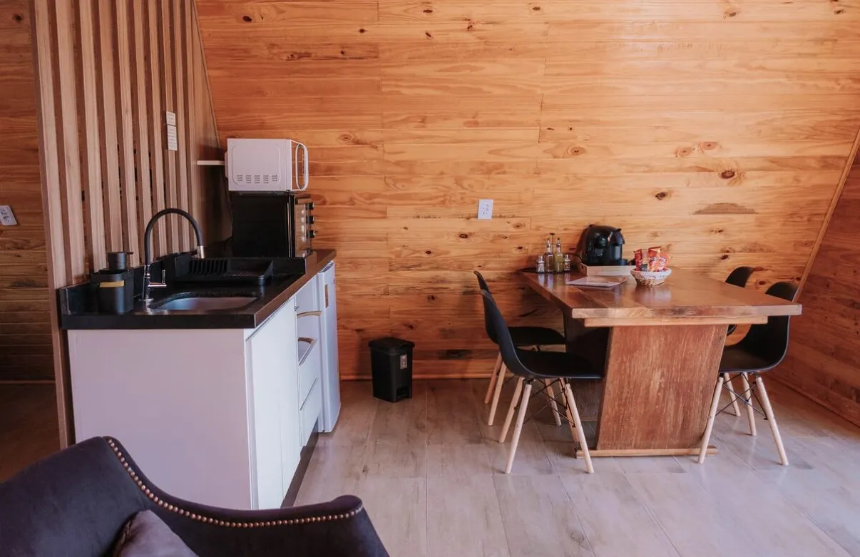 Refúgio acolhedor em Gramado que une charme, conforto e contato direto com a natureza. As acomodações oferecem lareira para noites aconchegantes, sala de estar charmosa com sofá e TV, além de mini cozinha equipada com fogão por indução, frigobar, micro-ondas e utensílios, garantindo praticidade durante a estadia. Na área externa, um quiosque exclusivo com churrasqueira e espaços de lazer convida a momentos especiais ao ar livre.
