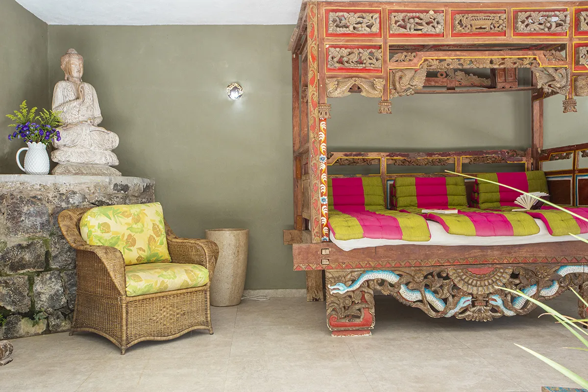 A Vila Kebaya propõe um atendimento pessoal e exclusivo. A missão é agradar o cliente e tornar o seu dia um pouquinho mais feliz. Os chalés são muito charmosos, com decoração balinesa, e dispõem de TV LCD 32” com pacote digital HD, frigobar, cafeteira Nespresso, cama queen size, cofre, ar condicionado, banheira de hidromassagem, secador de cabelo, kit de amenidades, interfone e terraço privativo.