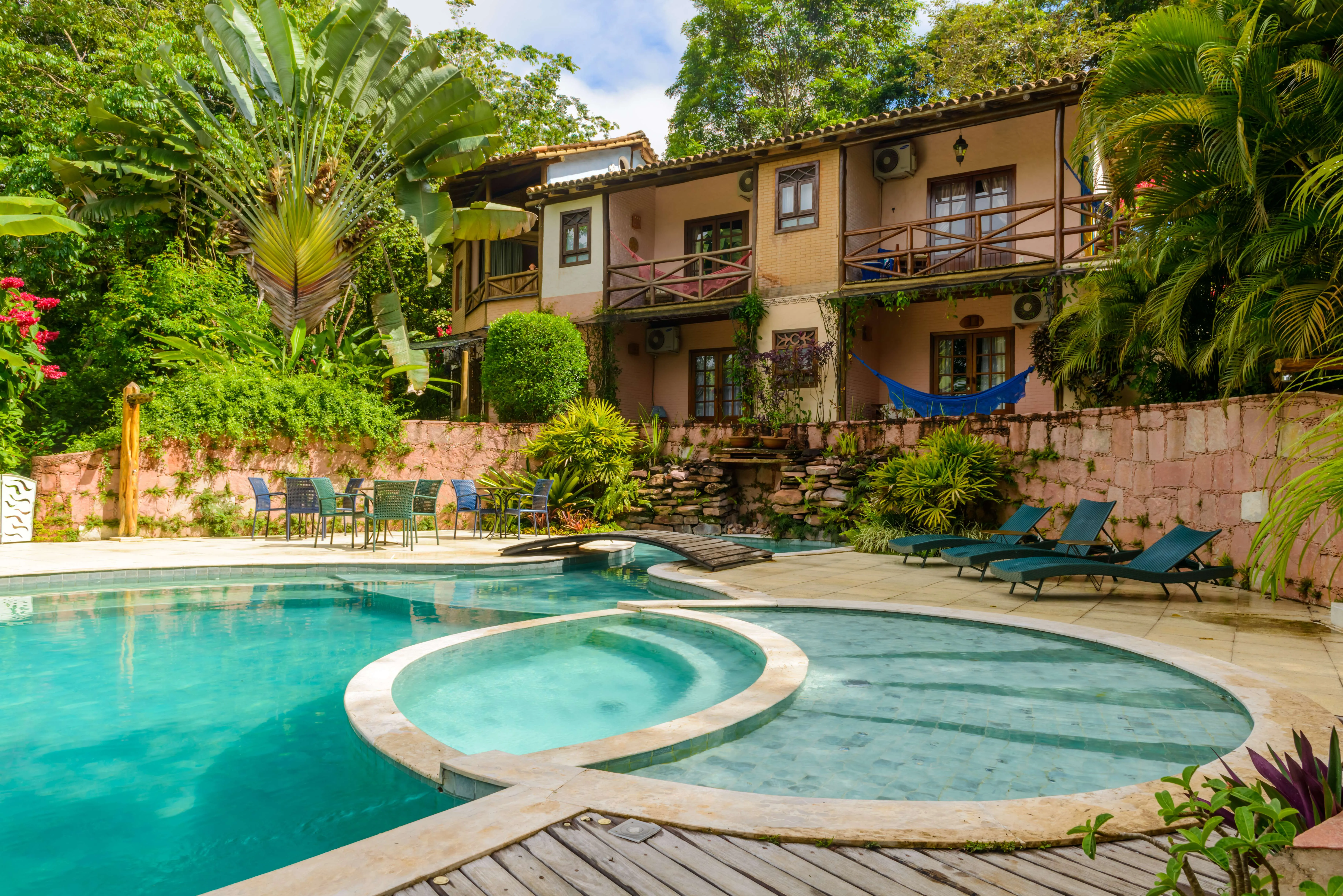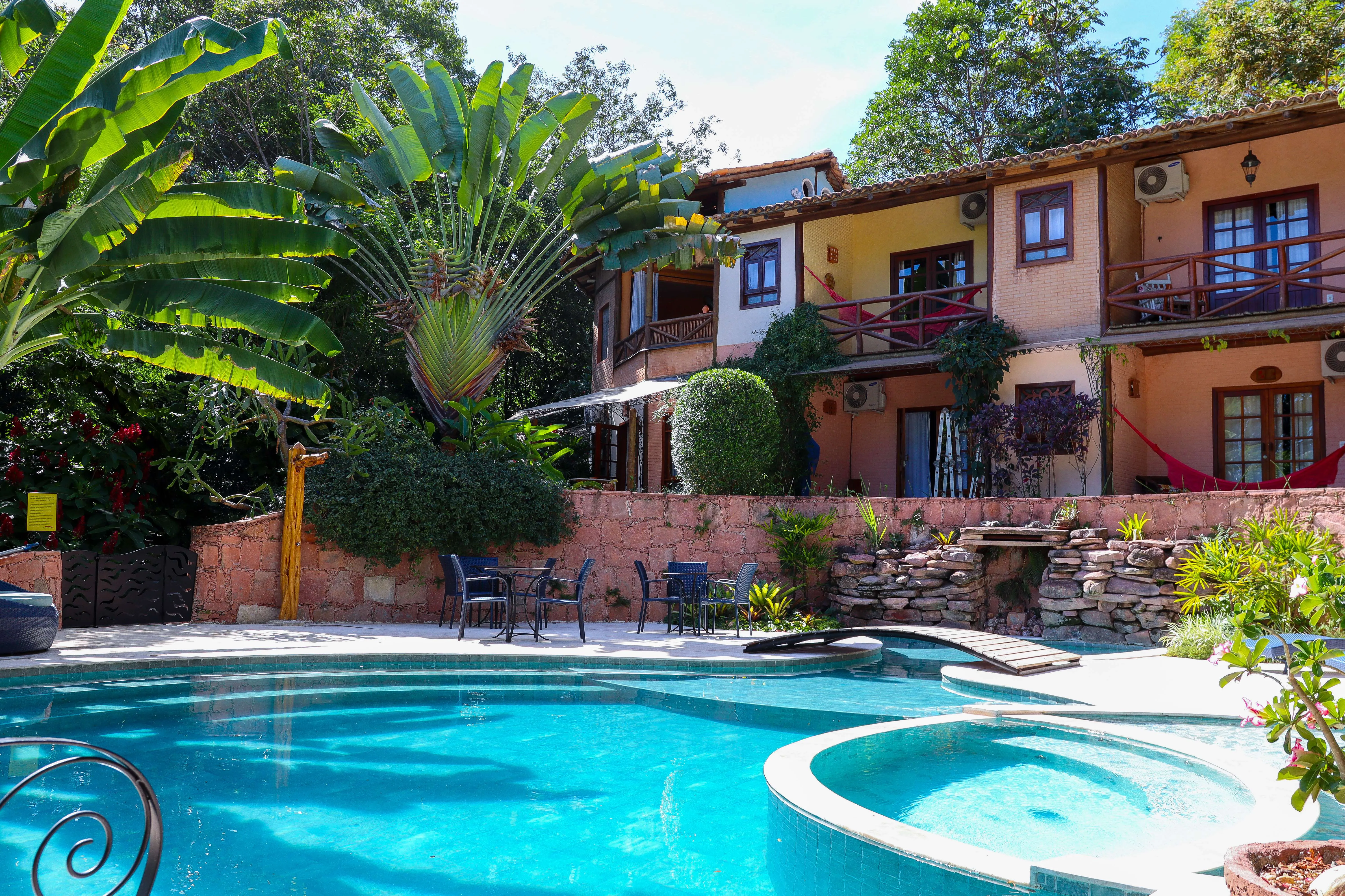 A Pousada Vila Serrano é a escolha preferida daqueles que gostam da intimidade e do acolhimento de uma pequena pousada. Construída com critérios ecológicos em uma grande área verde, a pousada possui estacionamento próprio e está localizada a cinco minutos a pé do centro histórico de Lençóis. Em estilo colonial, os charmosos apartamentos e bangalôs são equipados com TV de tela plana, ar condicionado, banheiro privativo, varanda com rede e uma decoração exclusiva de artistas plásticos. A piscina de borda infinita oferece vista para o centro histórico de Lençóis, uma hidromassagem integrada e uma cascata refrescante. O 'Bar da Vila' serve de apoio aos clientes que desfrutam desse relaxamento ideal após um dia de trilhas na Chapada Diamantina, especialmente no período da tarde, quando os visitantes retornam dos passeios. Possui um espaço integrado à natureza para práticas de Yoga.