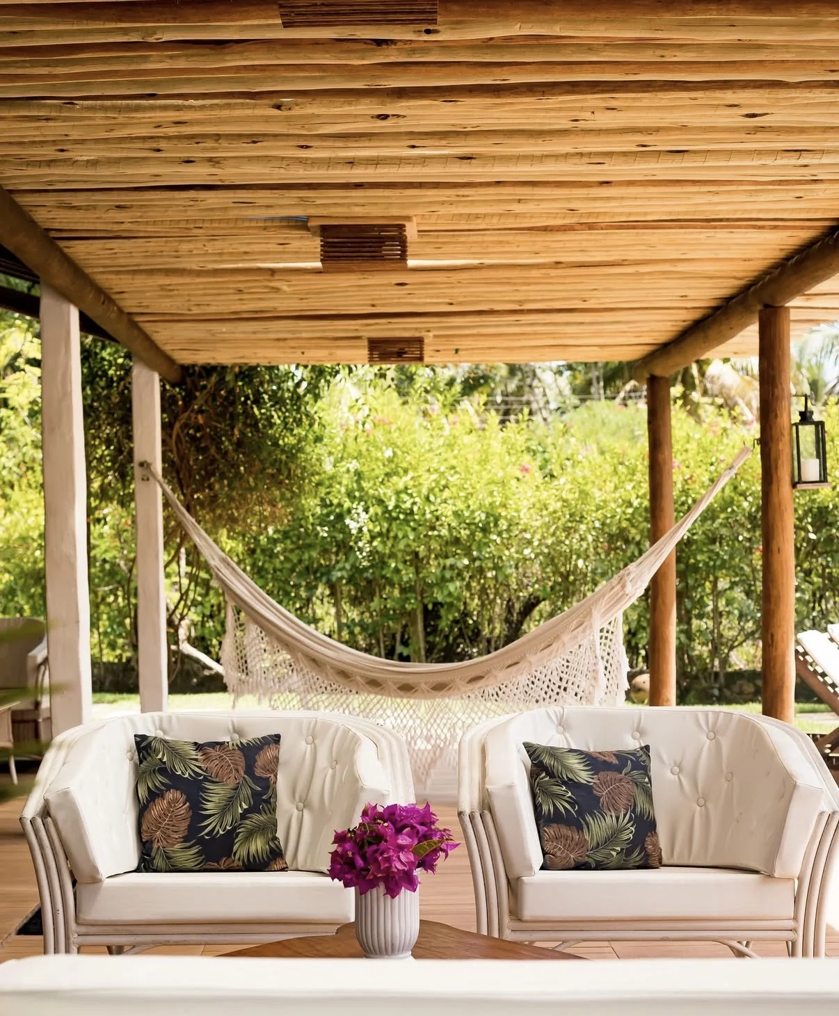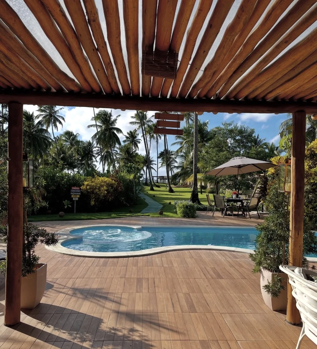 Um verdadeiro sítio à beira-mar, a Vila do Sossego está localizada em uma área exclusiva de 5.000 m2 e total privacidade, de frente para o mar. Com arquitetura rústica, possui 4 suítes (todas com ar condicionado SPLIT e chuveiro elétrico), sendo 2 suítes na casa principal e 2 suítes em chalés individuais, com capacidade total para 12 pessoas. Serviços domésticos, como cozinheira, já estão incluídos no valor da tarifa.