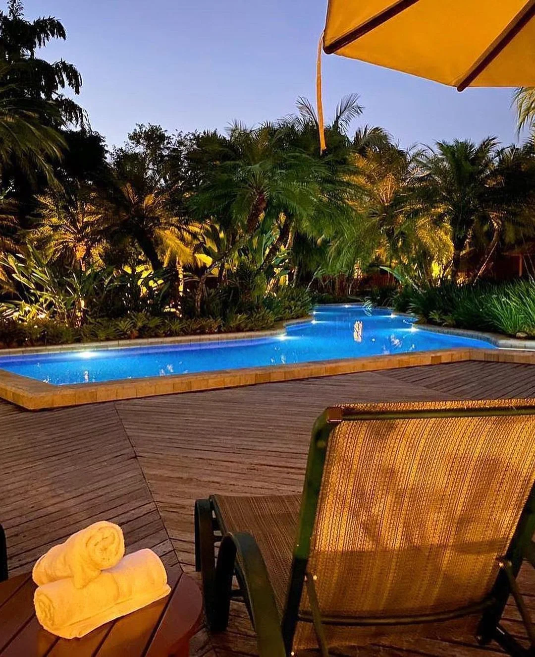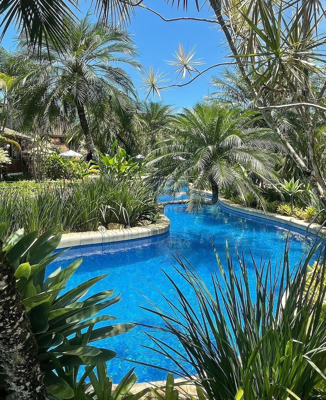 O paisagismo tropical e o estilo Rústico Chique e a decoração minimalista onde o menos é mais se espalham por todos os cantos do Hotel… mas são as plantas e as passarelas que serpenteiam a piscina de traçado longo, estreito e sinuoso que chamam mais a atenção.