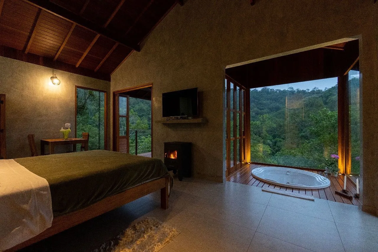 A localização na Serra da Mantiqueira é conhecida por sua beleza natural e paisagens deslumbrantes, tornando-a uma opção atraente para quem procura uma escapada tranquila. A inclusão de jacuzzis em varandas envidraçadas é um toque luxuoso que permite aos hóspedes desfrutarem de momentos de relaxamento enquanto apreciam as vistas da natureza circundante. A disponibilidade de uma cozinha completa, juntamente com aparelhos como cafeteira Nespresso, micro-ondas, frigobar, aparelho de fondue e torradeira, proporciona flexibilidade aos hóspedes para prepararem suas refeições ou lanches de acordo com suas preferências. A lareira é uma adição acolhedora, ideal para as noites mais frias e proporcionando um ambiente aconchegante. A proximidade do centro de Santo Antonio do Pinhal e de Campos do Jordão oferece acesso a lojas, restaurantes e atividades culturais, tornando o Villa Cambraia uma base conveniente para explorar a região. O Villa Cambraia é um refúgio ideal para casais e viajantes que desejam relaxar, aproveitar a natureza e desfrutar de uma estadia tranquila na Serra da Mantiqueira. Com suas comodidades e ambiente encantador, promete uma experiência memorável.