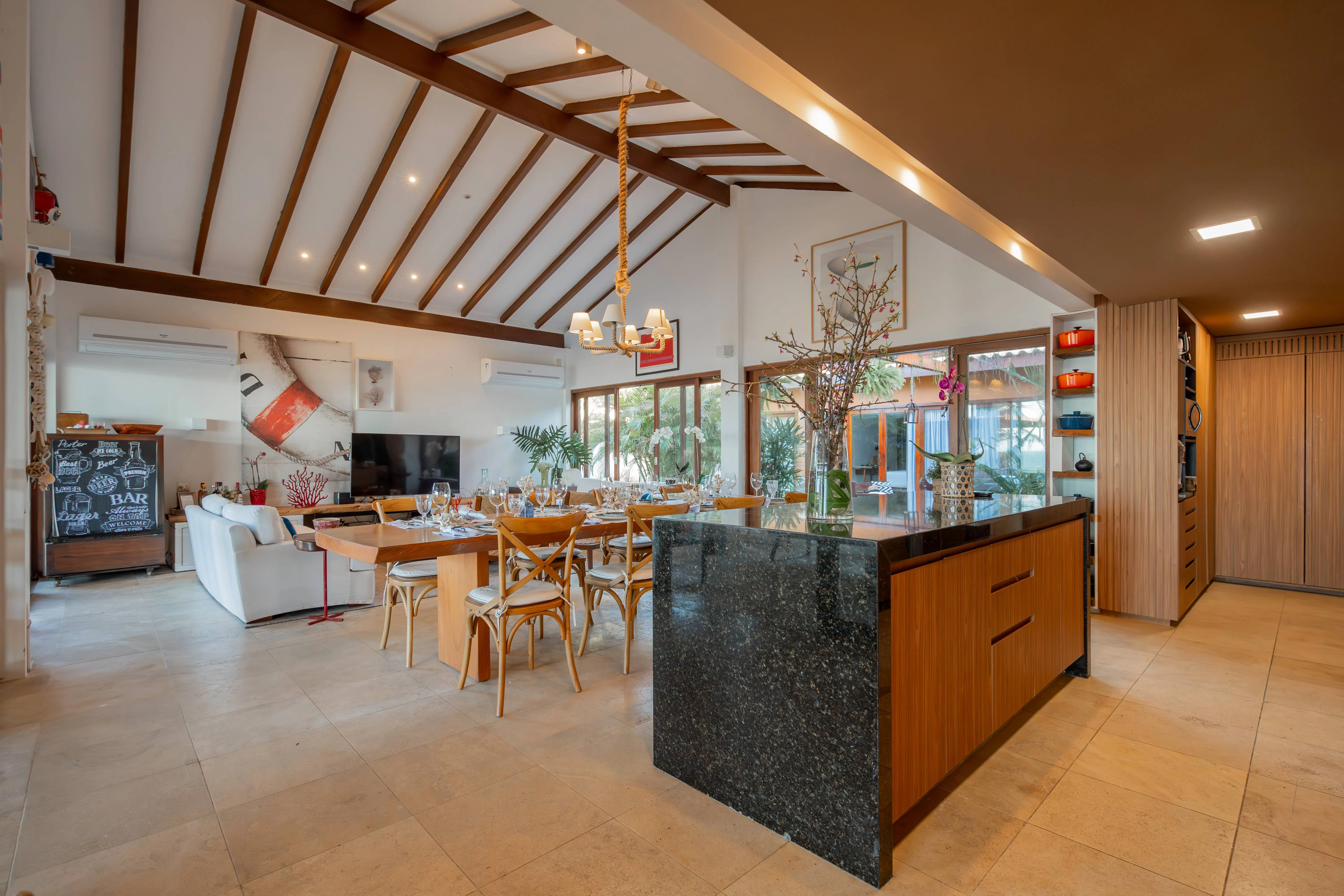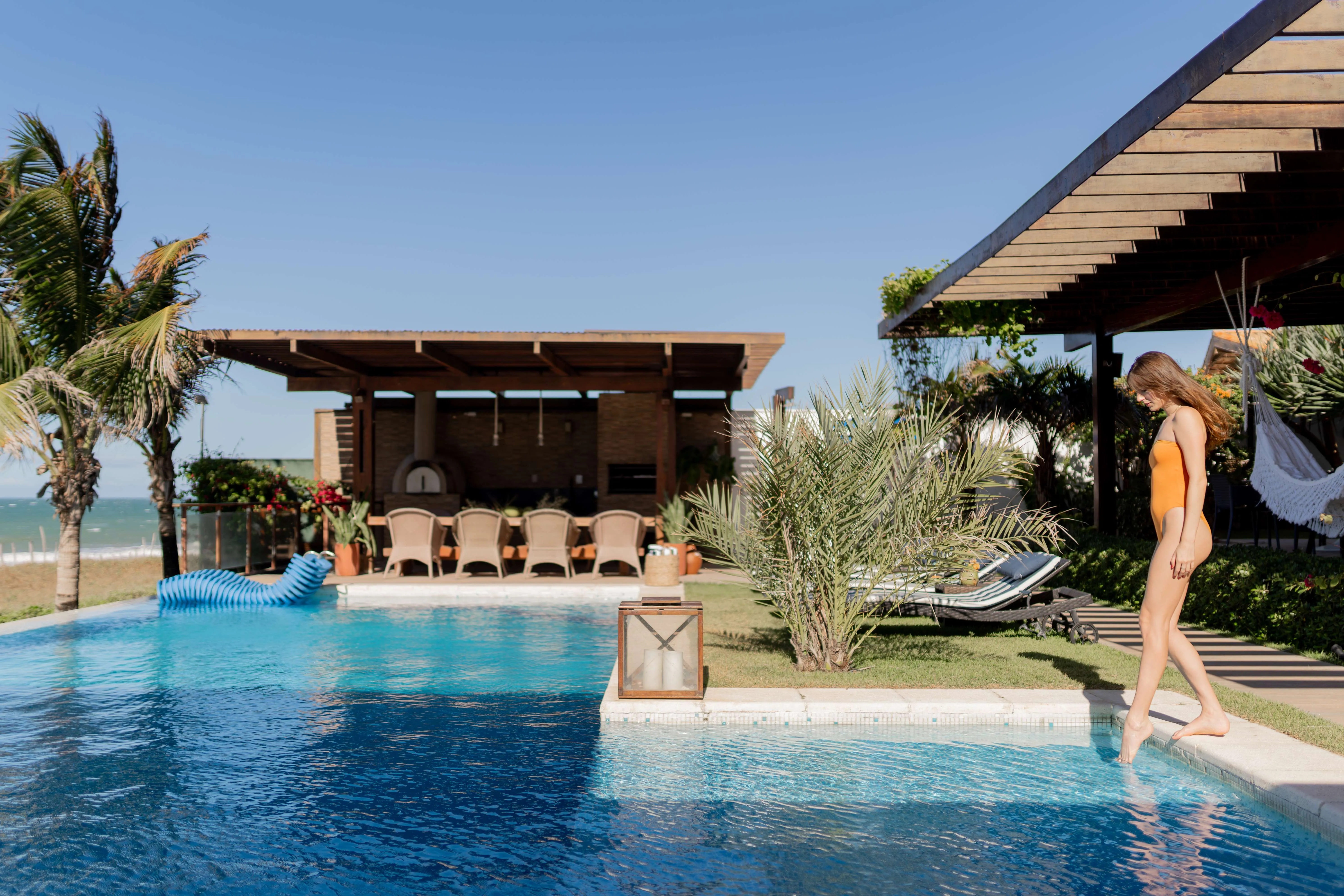 A Villa Taíba, localizada na praia da Taíba, no Ceará, é um paraíso natural com coqueirais, dunas, corais e enseadas, além de ser um ponto de destaque para surf e kitesurf. As duas casas estão conectadas por um deck central, garantindo total privacidade em relação ao condomínio. De frente para o mar, oferece vista espetacular e duas piscinas, uma de borda infinita e outra aquecida com hidromassagem. Com 10 suítes equipadas com ar-condicionado, enxoval de alto padrão e colchões de qualidade superior, acomoda até 30 pessoas, proporcionando conforto e luxo em meio à natureza.