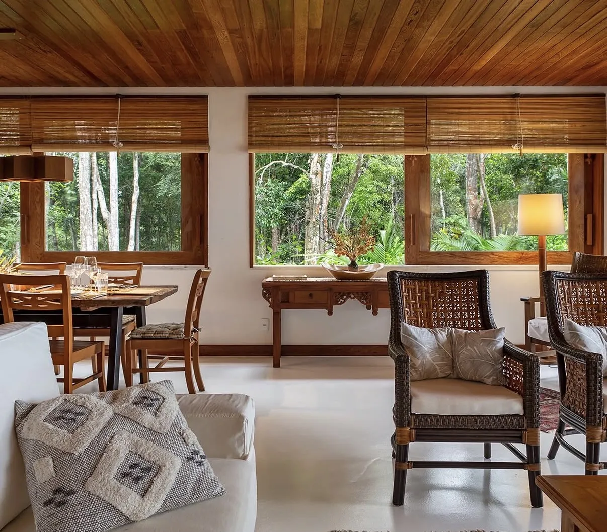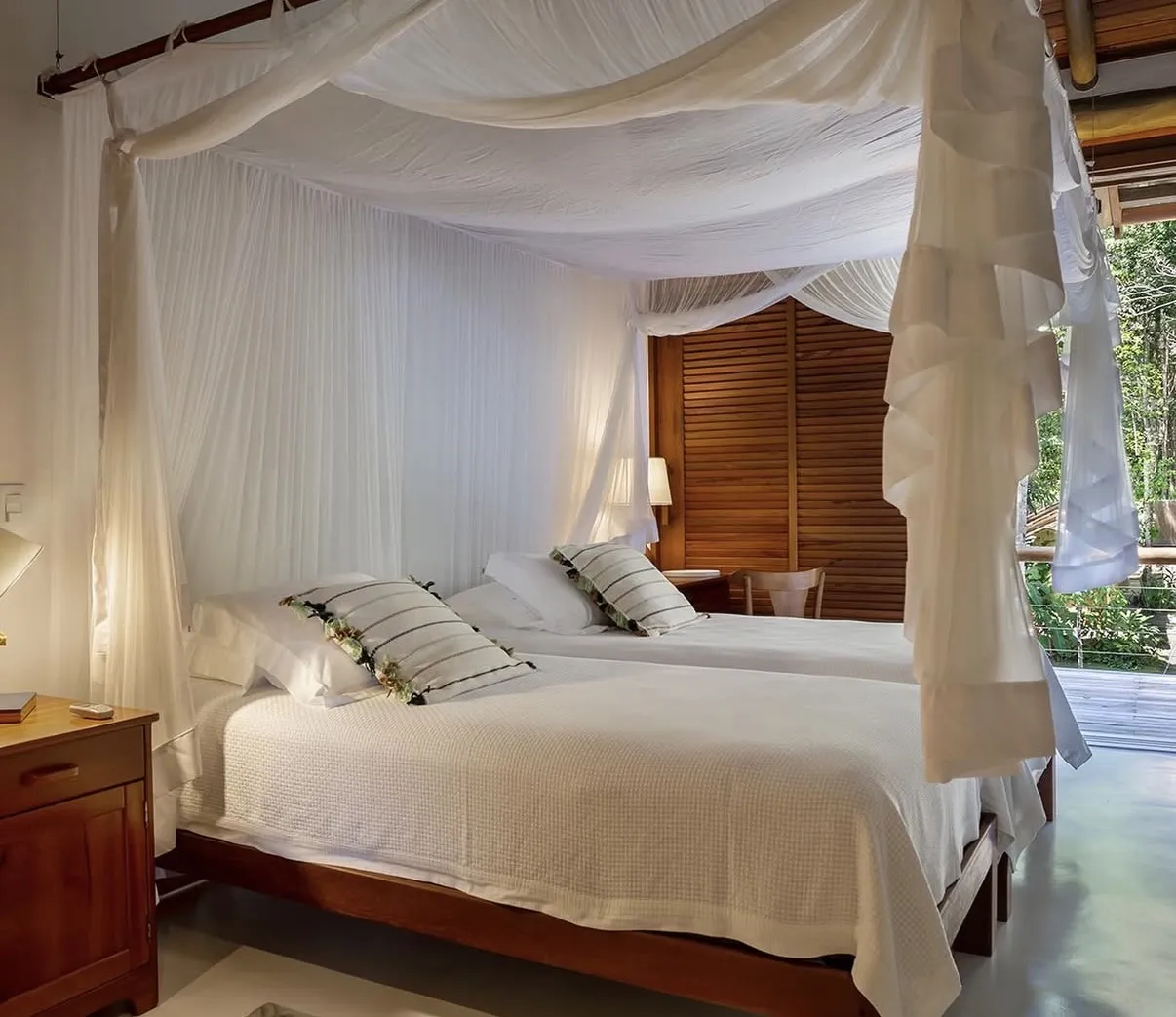 A Casa Maré é um refúgio elegante que combina conforto e sofisticação em cada ambiente. Projetada para oferecer bem-estar e praticidade, possui uma arquitetura acolhedora e funcional, perfeita para quem busca dias tranquilos em meio a um cenário encantador. A suíte do piso superior conta com cama king-size, ar-condicionado, closet, mosquiteiro e uma vista privilegiada para o jardim, enquanto o piso térreo abriga uma segunda suíte com cama adicional de solteiro, ideal para famílias ou pequenos grupos.
