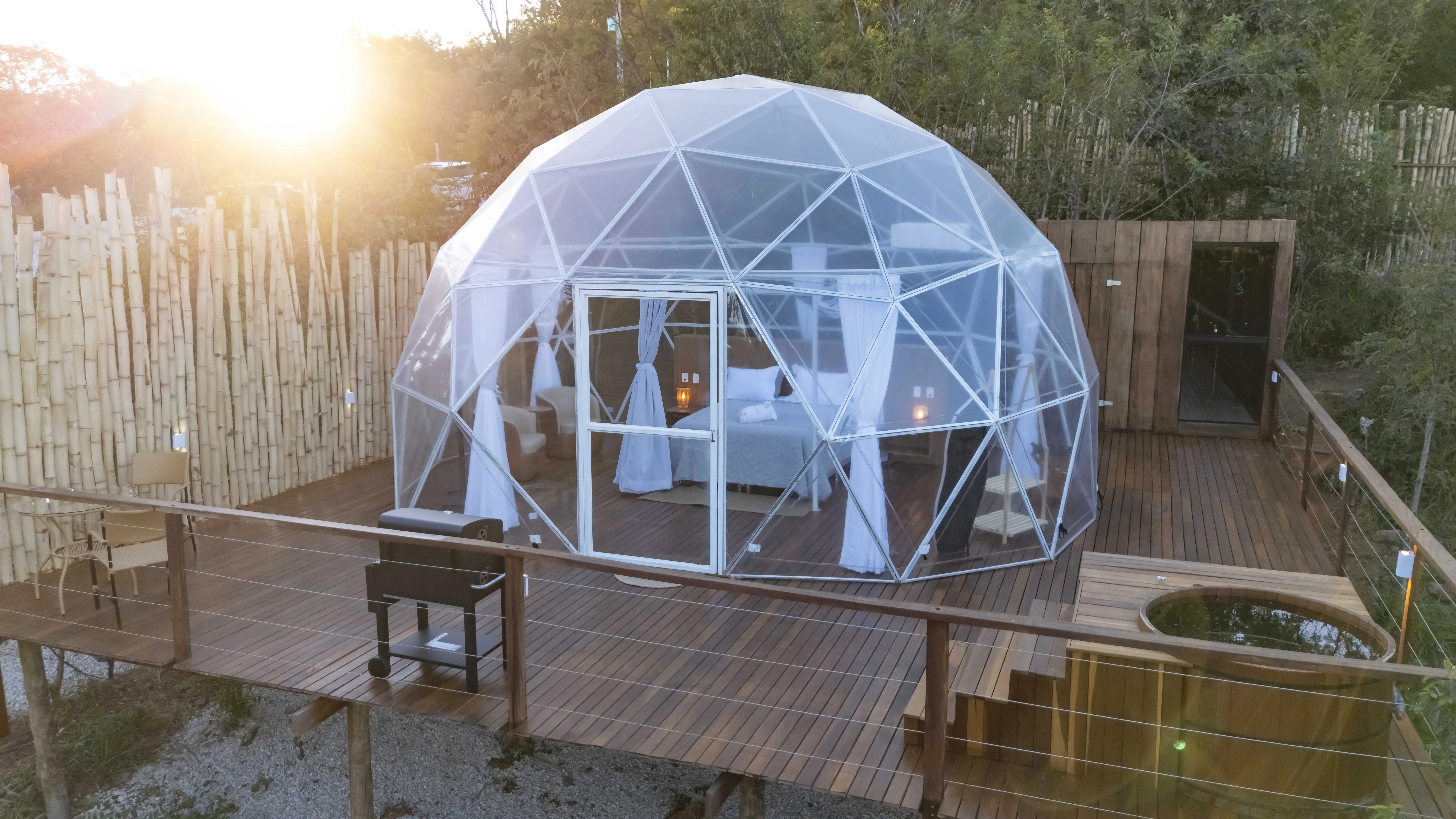 A Villa das Cabanas oferece uma experiência única de hospedagem em meio ao cerrado, com cabanas luxuosas e transparentes projetadas para proporcionar conexão com a natureza sem abrir mão do conforto. Localizada a poucos metros da entrada de Pirenópolis-GO, combina privacidade total, vista panorâmica e estrutura de alto padrão, em um ambiente silencioso e acolhedor. Ideal para casais e momentos especiais, une romantismo, contemplação e tranquilidade, com acesso facilitado à cidade.