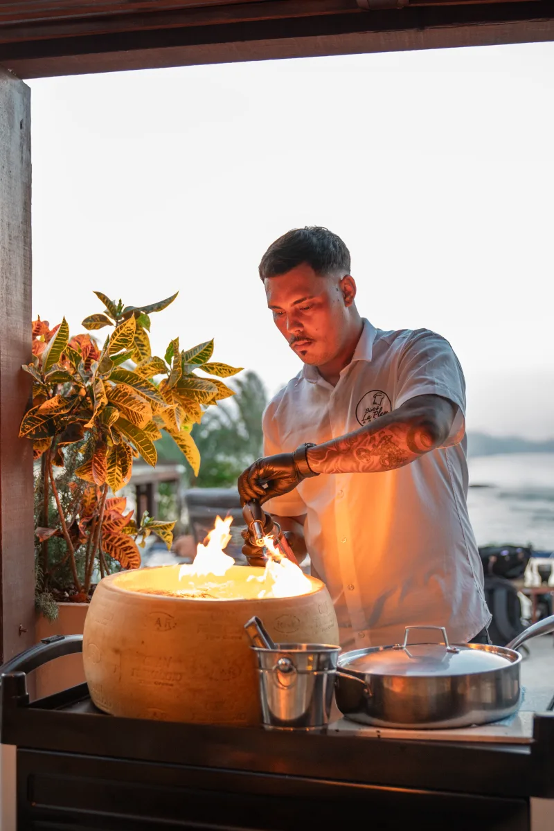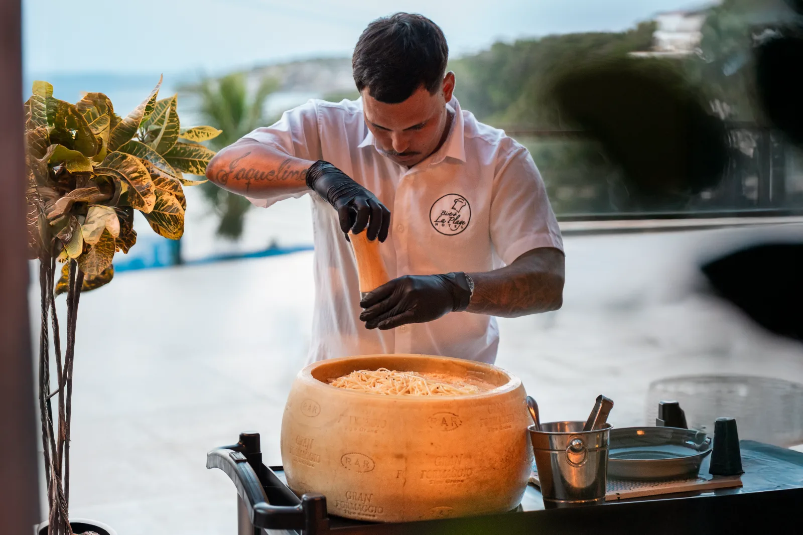 O hotel também conta com um charmoso bistrô, ideal para jantar enquanto aprecia um dos mais belos pôr do sol de Búzios. O café da manhã é servido diariamente, proporcionando um início de dia tranquilo.