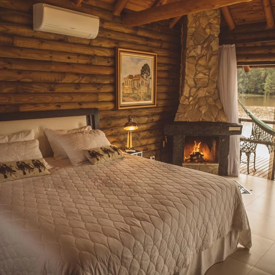 Ar condicionado Secador de cabelo TV a cabo / Smart TV Jacuzzi / Ofurô / Banheira Coberta Frigobar Lareira Máquina de Café Enxoval de Luxo (+ Roupão e Pantufa) Sauna Cozinha Estação de trabalho (mesa e cadeira) Piscina Aquecida ou climatizada Borda Infinita Coberta