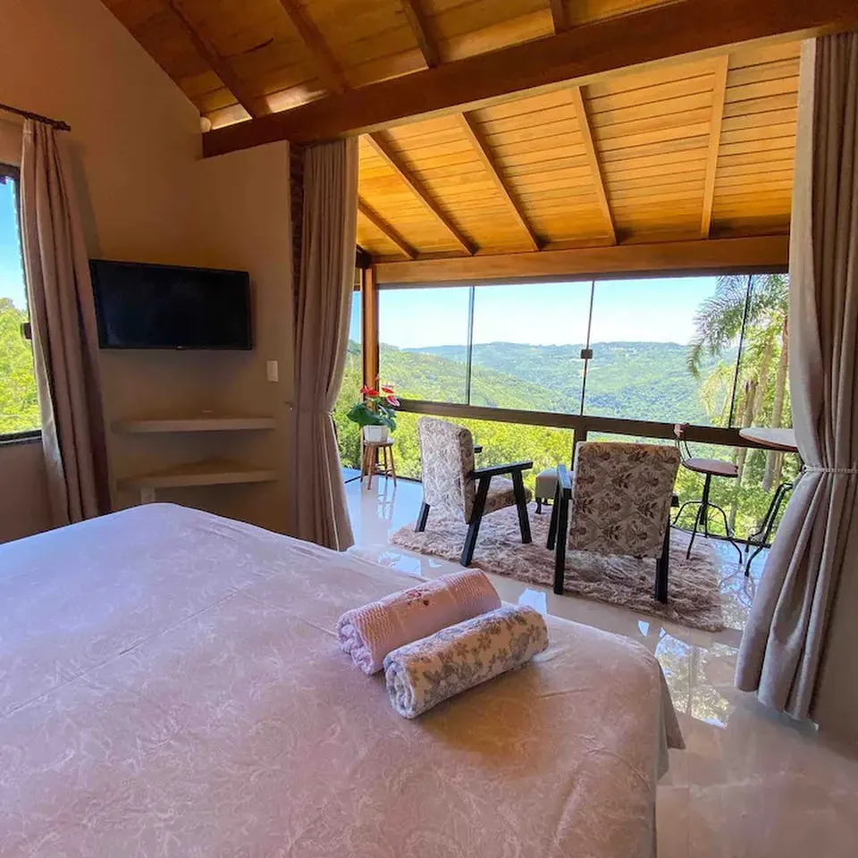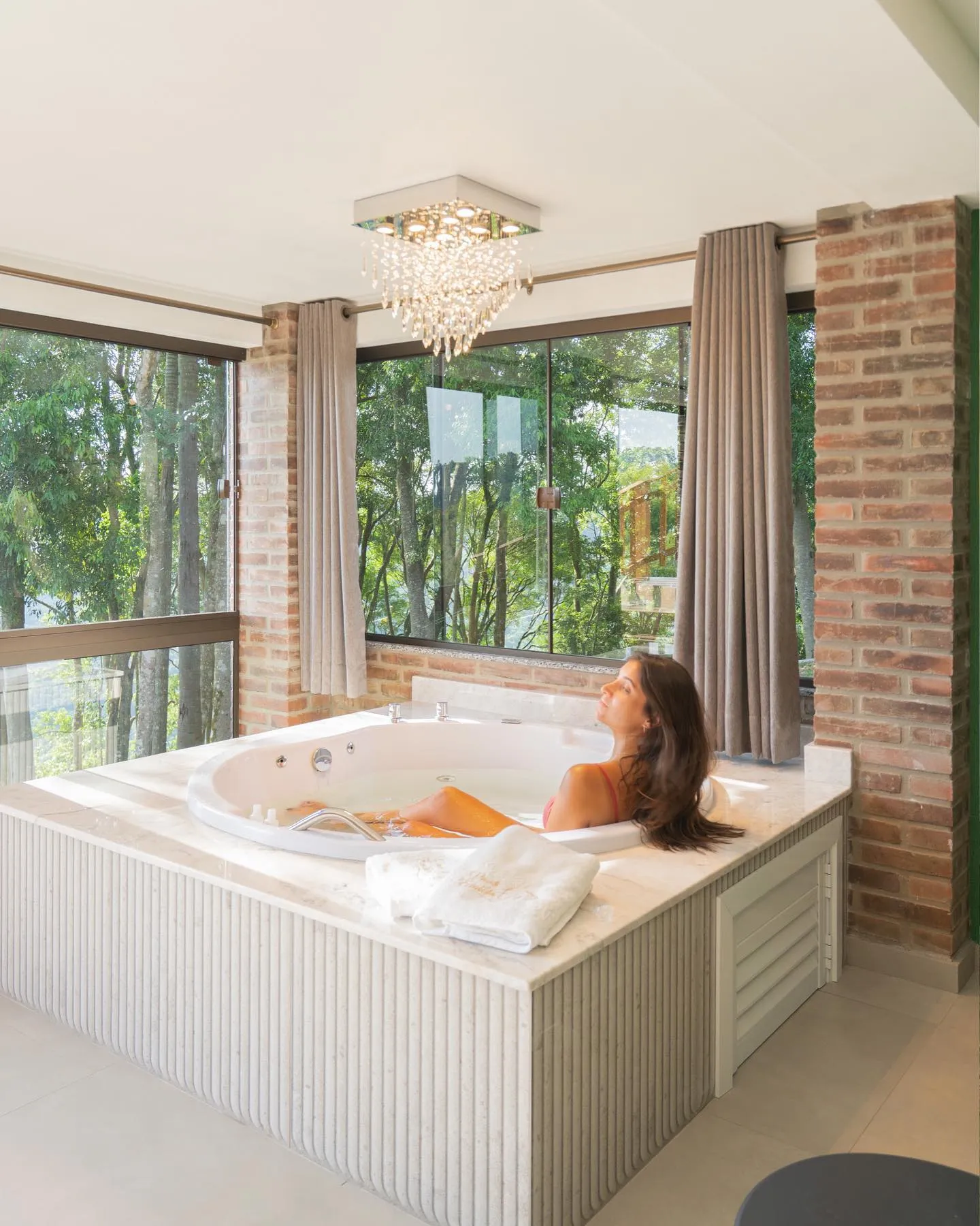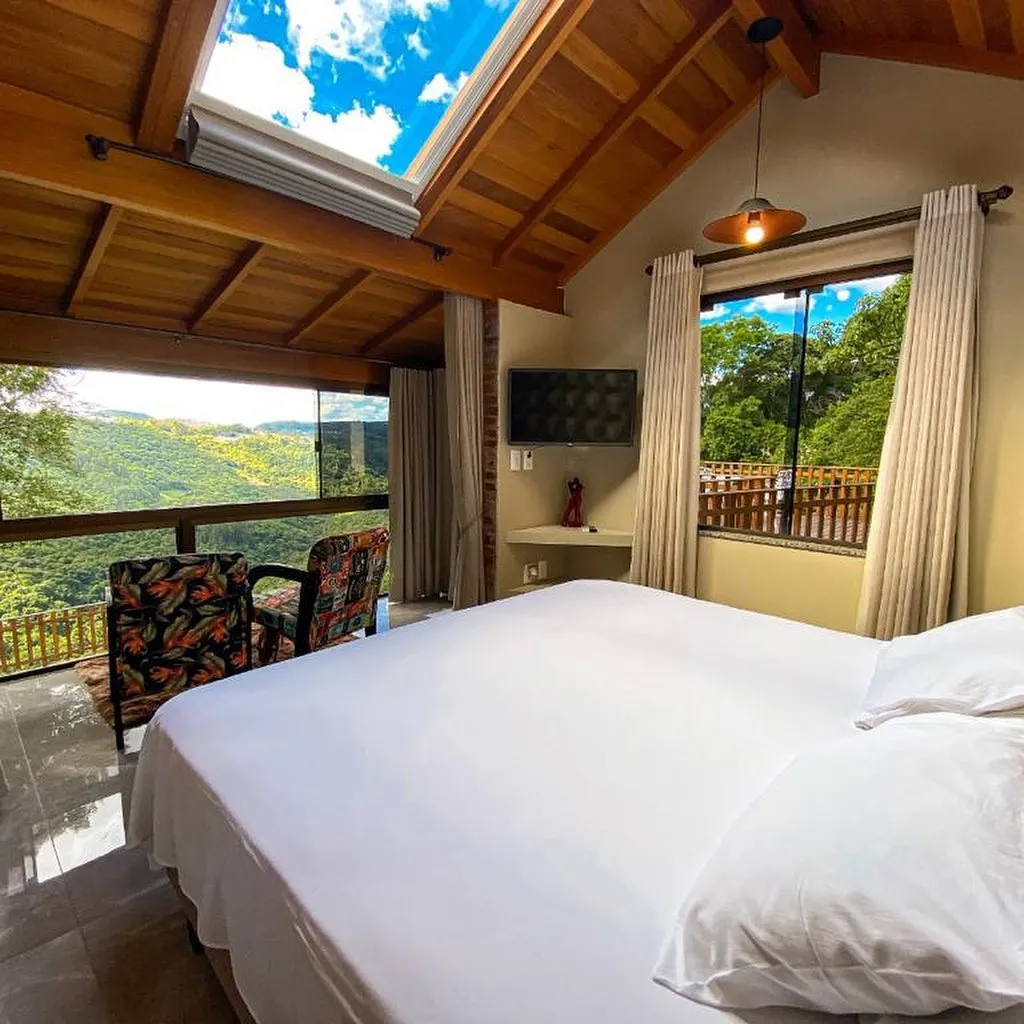 Ar condicionado Secador de cabelo TV a cabo / Smart TV Jacuzzi / Ofurô / Banheira Coberta Frigobar Lareira Máquina de Café Enxoval de Luxo (+ Roupão e Pantufa) Sauna Cozinha Estação de trabalho (mesa e cadeira) Piscina Aquecida ou climatizada Borda Infinita Coberta