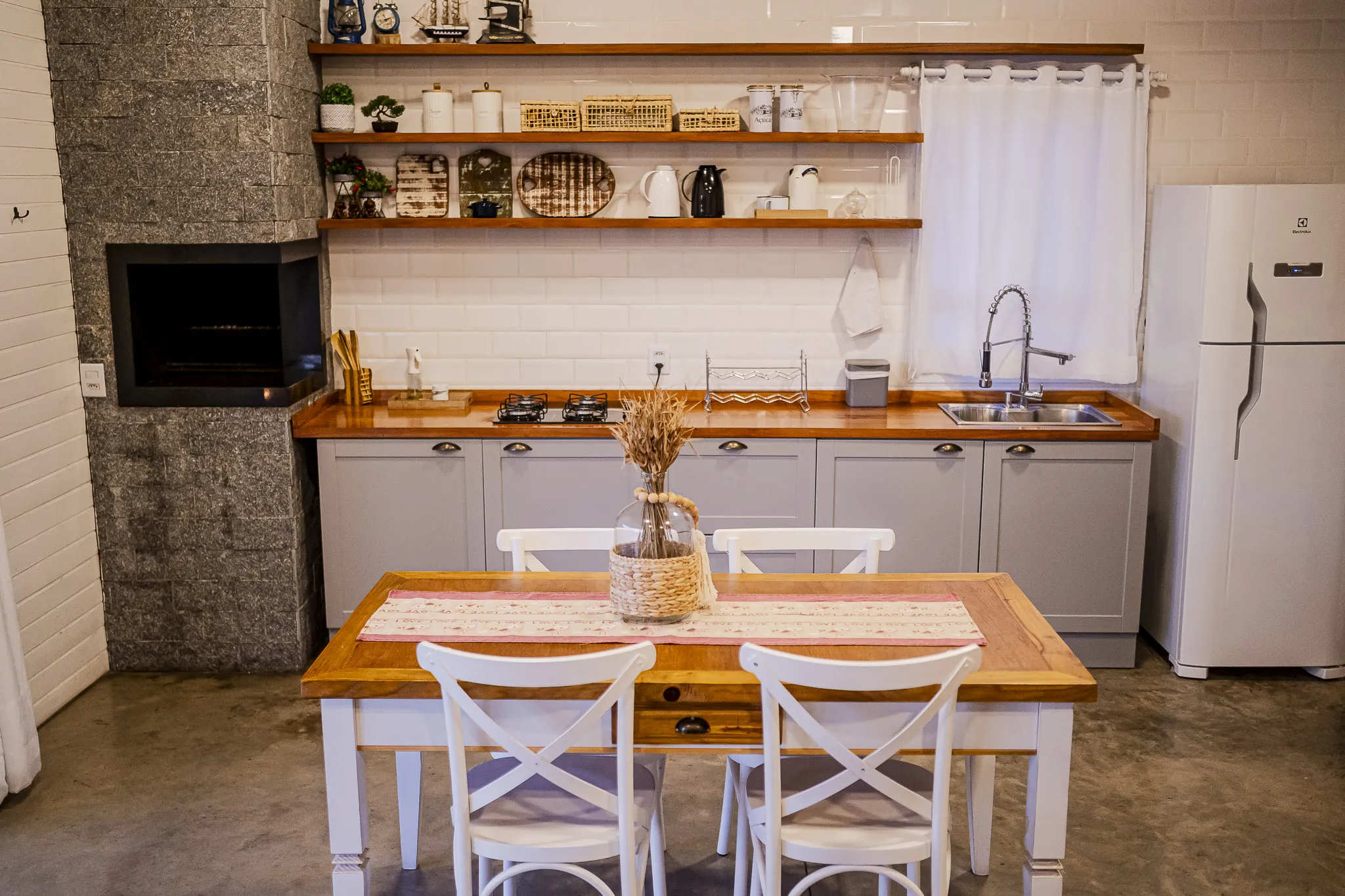 Totalmente equipada para a estadia, a casa conta com cozinha completa com utensílios para o preparo de refeições, além de pequena disponibilidade de itens básicos como sal, óleo e açúcar. Também são oferecidos itens de limpeza e higiene, como detergente, sabonete líquido, papel higiênico e toalhas. As refeições não estão inclusas, permitindo que cada hóspede leve e prepare seus próprios alimentos, tornando a experiência ainda mais personalizada. Pacotes de café da manhã podem ser contratados à parte, enriquecendo a vivência no campo.