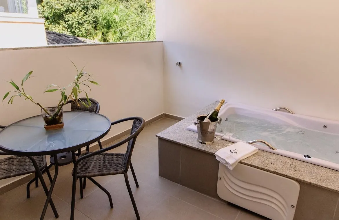 Ar condicionado Secador de cabelo TV a cabo / Smart TV Jacuzzi / Ofurô / Banheira Coberta Frigobar Lareira Máquina de Café Enxoval de Luxo (+ Roupão e Pantufa) Sauna Cozinha Estação de trabalho (mesa e cadeira) Piscina Aquecida ou climatizada Borda Infinita Coberta