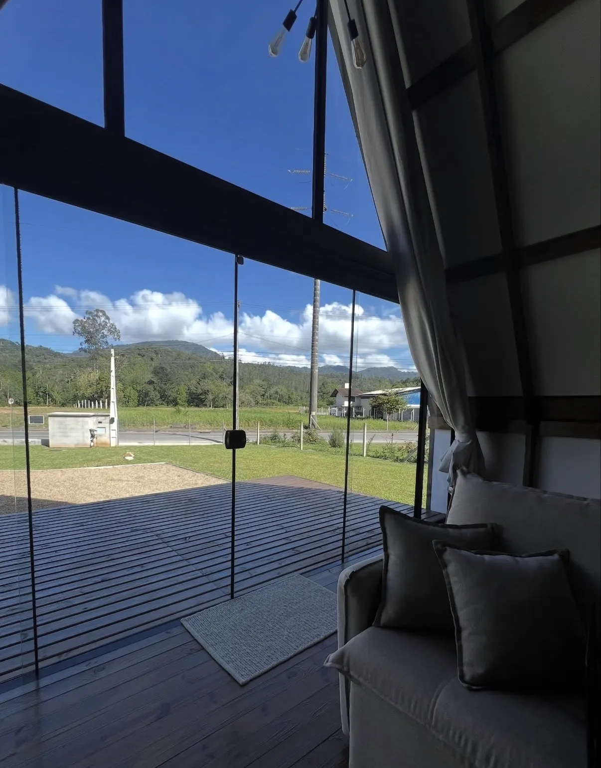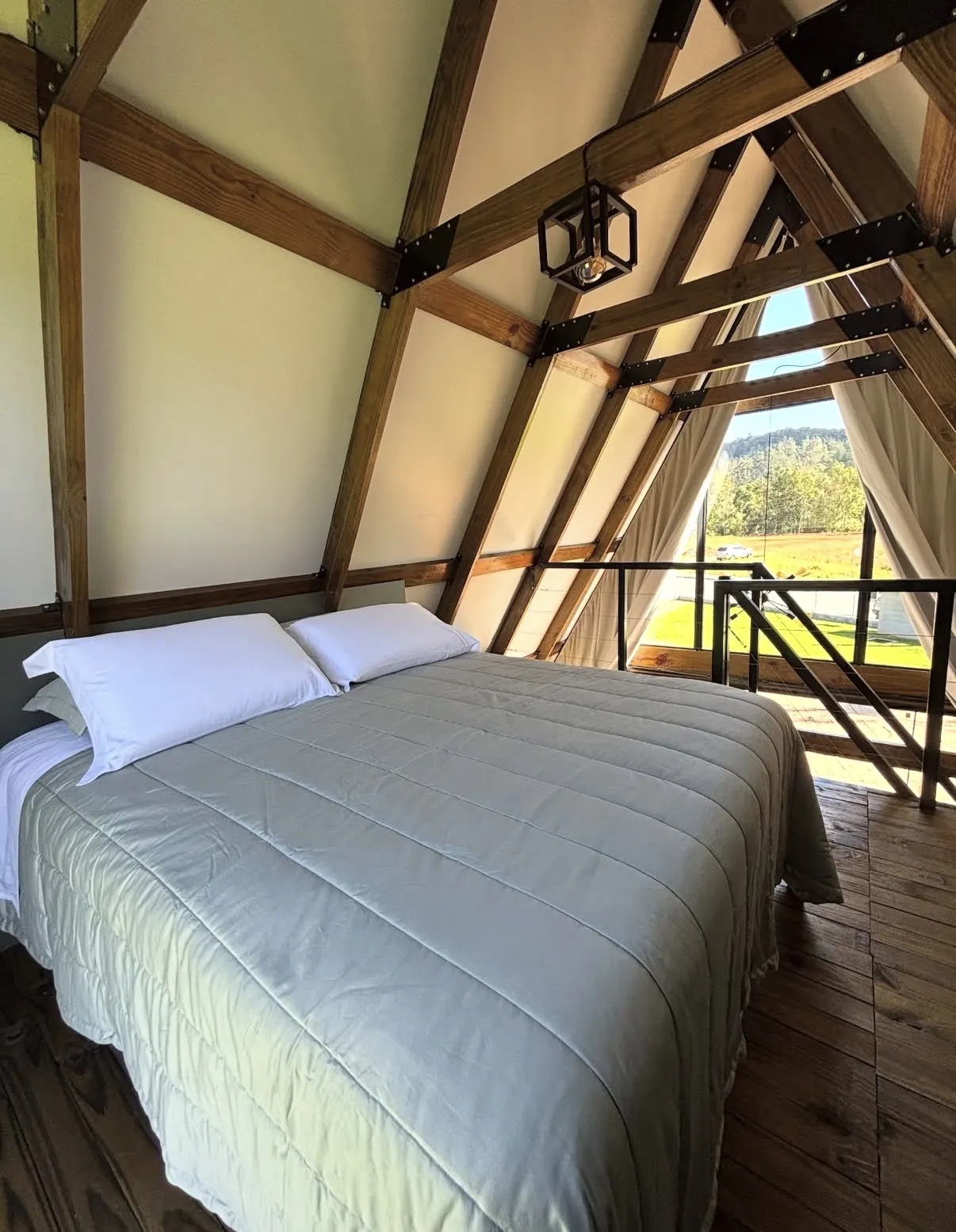 O AllesVilla foi criado para quem busca uma pausa verdadeira, um respiro em meio ao silêncio e ao design acolhedor integrado à natureza. As cabanas oferecem um ambiente sereno, pensado para desacelerar e proporcionar conforto, com cama Queen no mezanino e sofá-cama para duas pessoas na área inferior, acomodando até quatro hóspedes com praticidade e aconchego.
