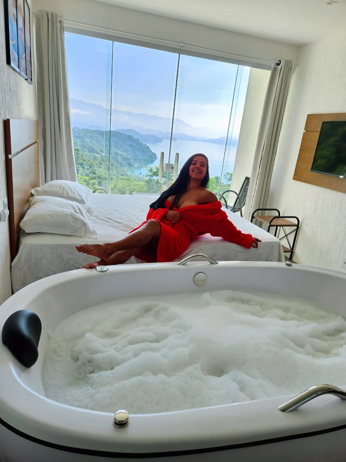 Ar condicionado Secador de cabelo TV a cabo / Smart TV Jacuzzi / Ofurô / Banheira Coberta Frigobar Lareira Máquina de Café Enxoval de Luxo (+ Roupão e Pantufa) Sauna Cozinha Estação de trabalho (mesa e cadeira) Piscina Aquecida ou climatizada Borda Infinita Coberta