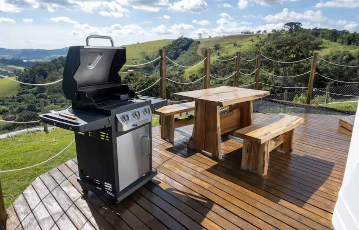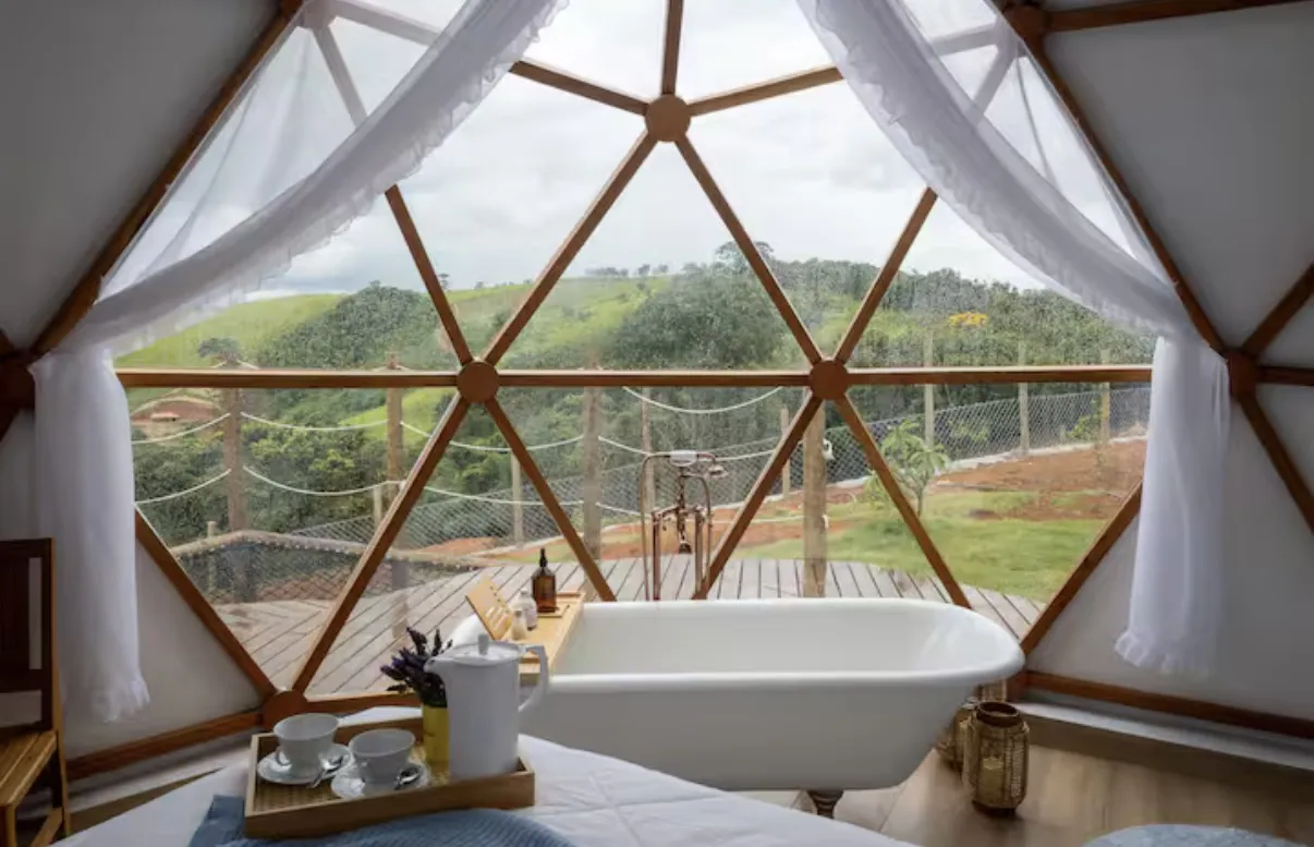 O domo é cuidadosamente decorado, mesclando estilo rústico e delicadeza, e proporciona experiências sensoriais que vão além da estadia: café da manhã com produtos locais, noites aquecidas à beira da fogueira, céu estrelado e paisagens de tirar o fôlego.