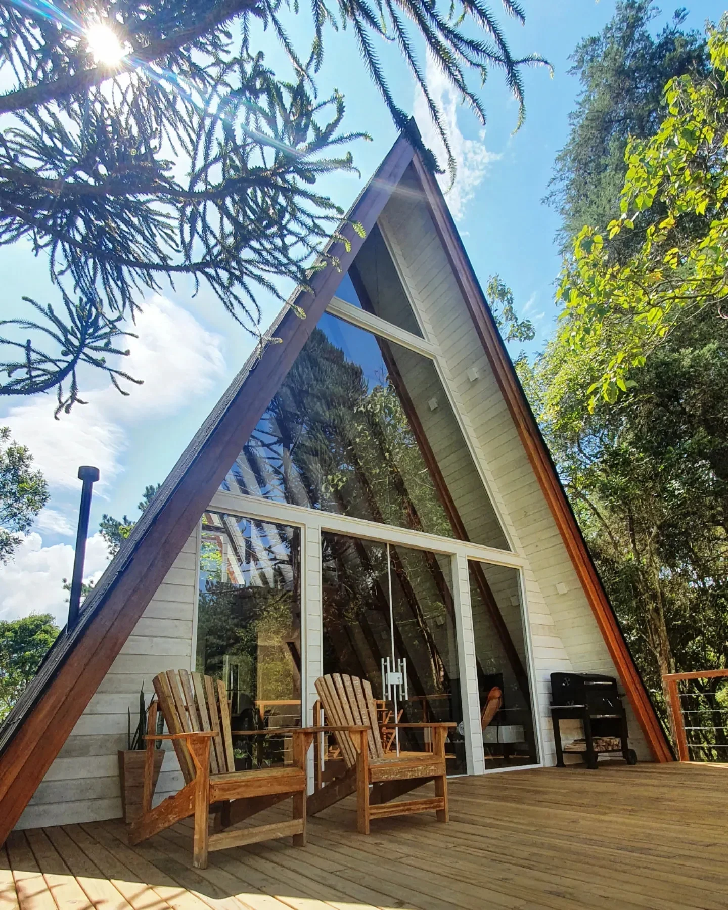 Cabana A-Frame em espaço com 40 mil m² às margens da Represa do Capivari, a 1 hora do centro de Curitiba. Ideal para viver momentos únicos junto à natureza e descansar com muito conforto. A cabana conta com lago privado, trilha em área de preservação, e cozinha equipada com tudo o que é necessário para preparar as refeições, além de churrasqueira no deck. O espaço é todo cercado em local calmo e seguro.