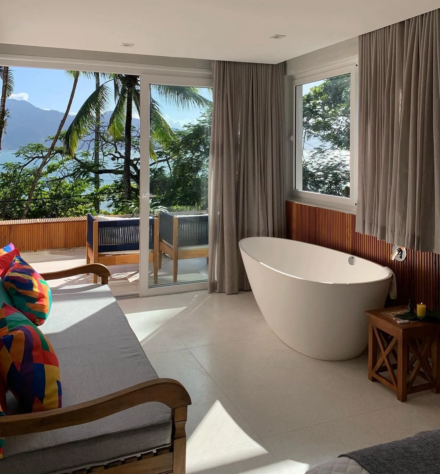 Bahari é um hotel boutique com apenas 7 suítes, cada uma com suas características e conforto excepcionais! Todas as suítes possuem vista para a praia, banheira de imersão e varandas para desfrutar de um lindo pôr do sol! O check-in e check-out são flexibilizados conforme disponibilidade. Uma experiência única e especial à beira-mar!