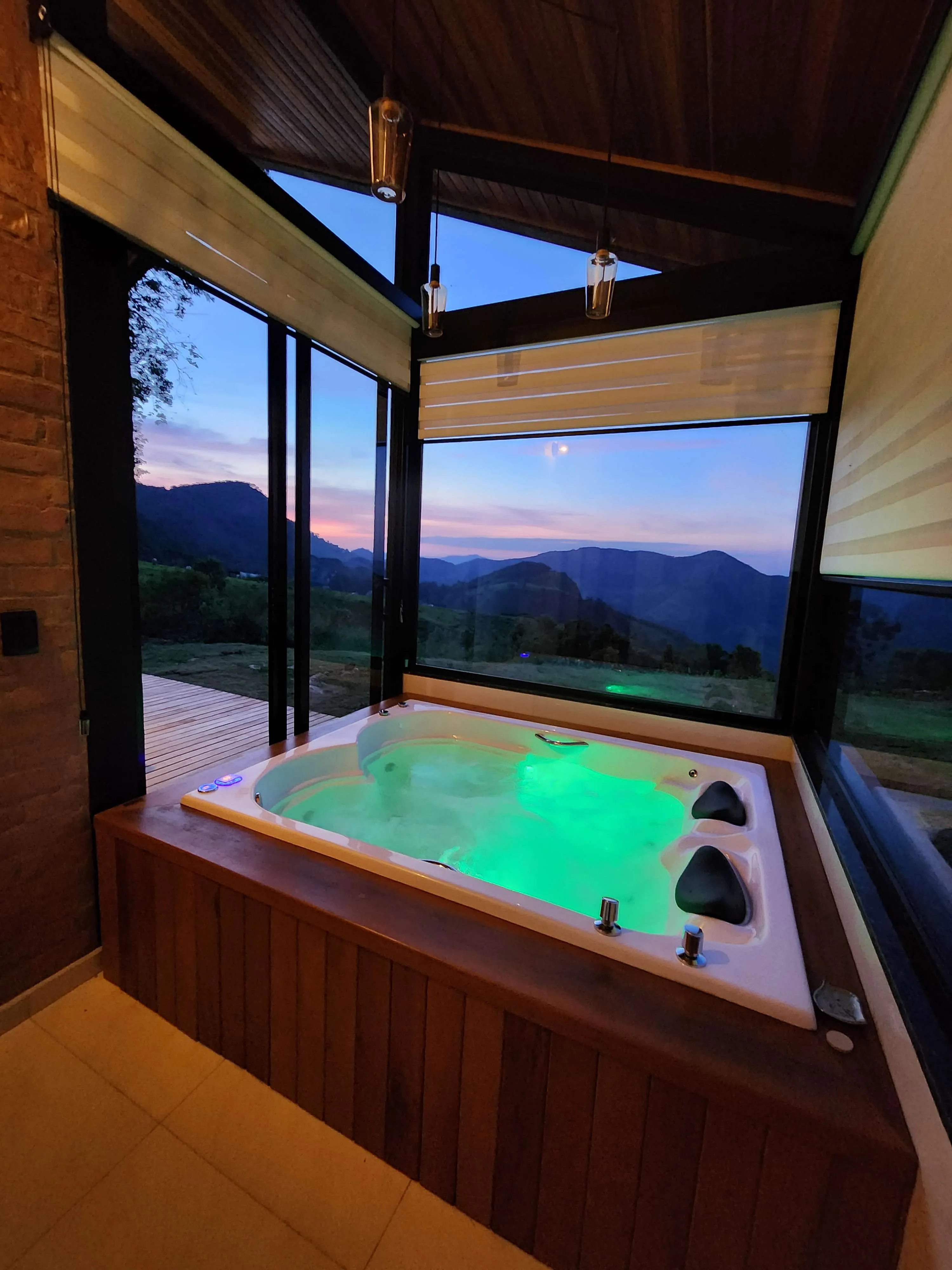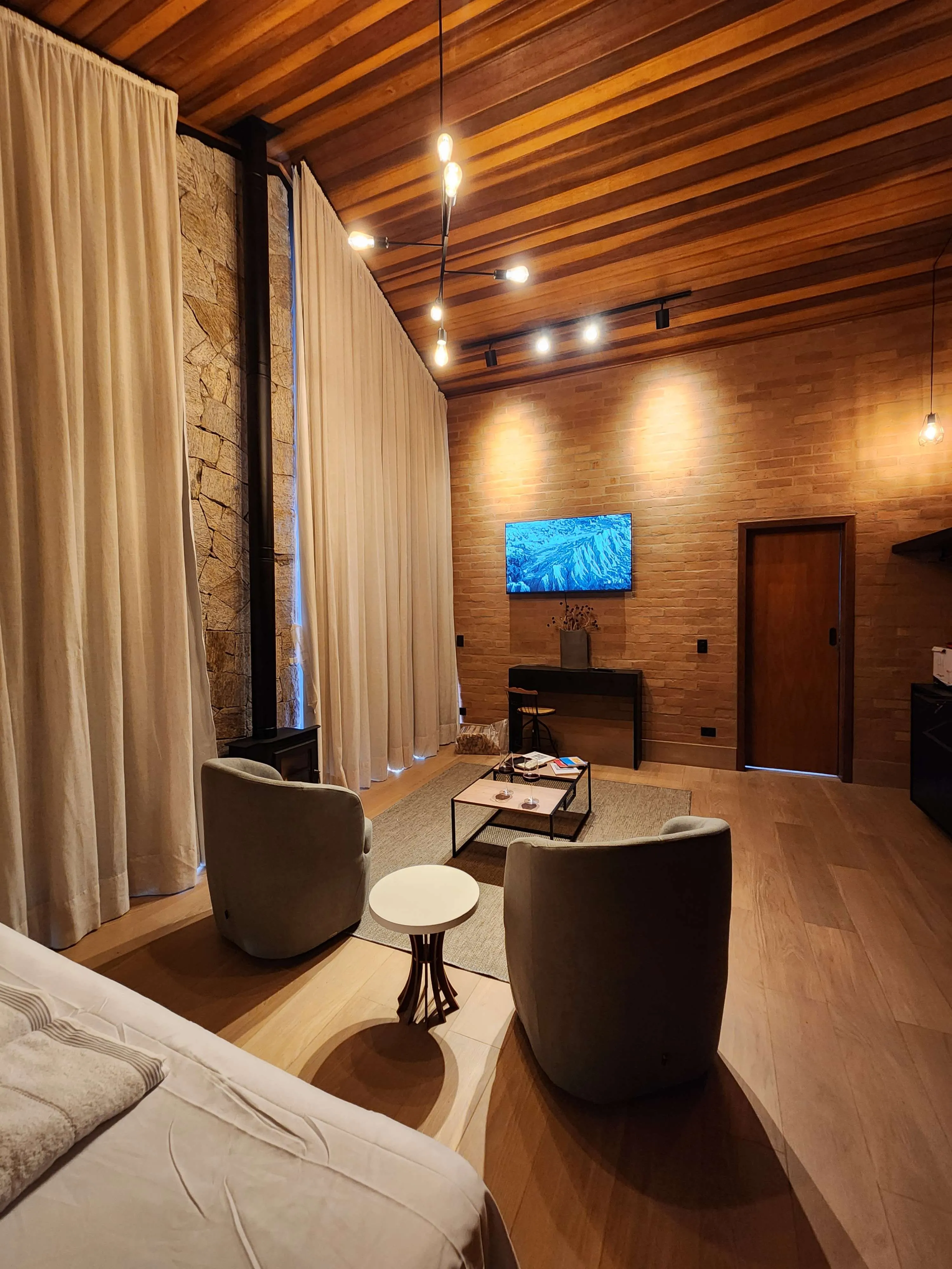 Ar condicionado Secador de cabelo TV a cabo / Smart TV Jacuzzi / Ofurô / Banheira Coberta Frigobar Lareira Máquina de Café Enxoval de Luxo (+ Roupão e Pantufa) Sauna Cozinha Estação de trabalho (mesa e cadeira) Piscina Aquecida ou climatizada Borda Infinita Coberta
