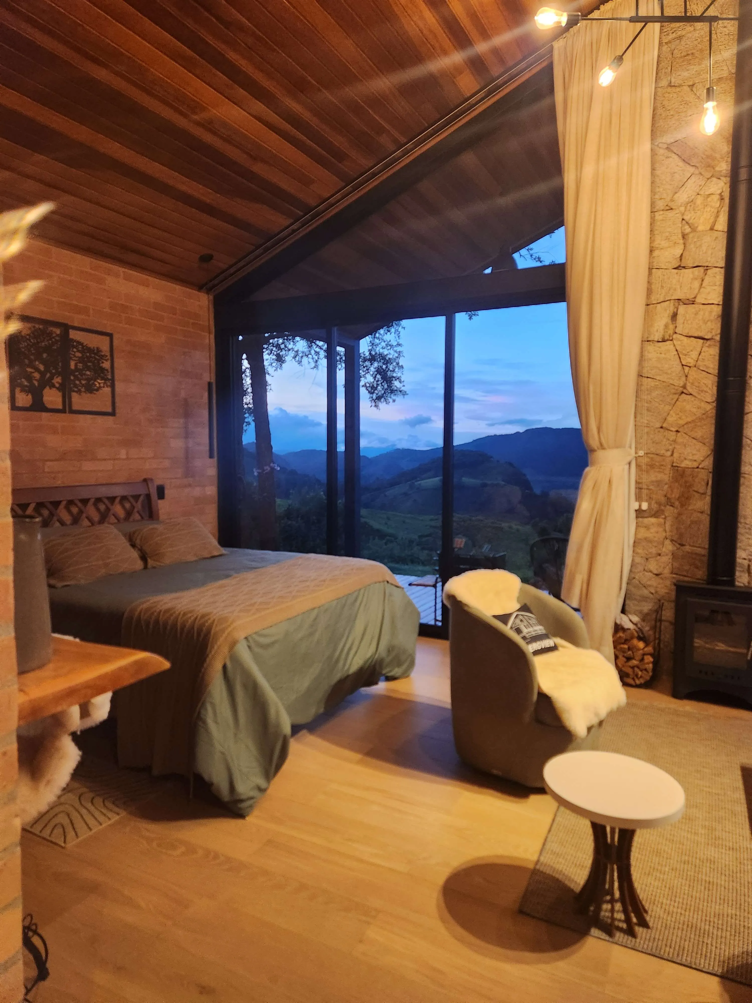 Os Chalés Bergview são dois chalés preparados para casais que buscam conforto, privacidade, contato com a natureza e descanso. Os chalés estão a 1650m de altitude, com vista de tirar o fôlego. Têm 80m² de área construída, possuindo lareira de dupla combustão, ar condicionado quente e frio, cozinha completa (taças de cristal, louça de cerâmica, panela de fondue, talheres normais e para churrasco, panelas, fogão, forno elétrico, chaleira elétrica, cafeteira elétrica, frigobar com água, refrigerantes e cervejas), churrasqueira, Smart TV de 55 polegadas, banheira de hidromassagem dupla, deck com mesa e cadeiras, poltronas na sala de estar e uma mini adega com vinhos e espumantes. Internamente os chalés são idênticos. Porém, o Araucária está um pouco acima e o Echaporã tem uma ampla área gramada em frente com lareira externa que pode ser utilizada para fazer churrasco. Todos os dias é entregue uma cesta de café da manhã no conforto do chalé. Temos parceria com massoterapeuta que atende o hóspede no interior do chalé ou no deck, no horário combinado (serviço cobrado à parte).