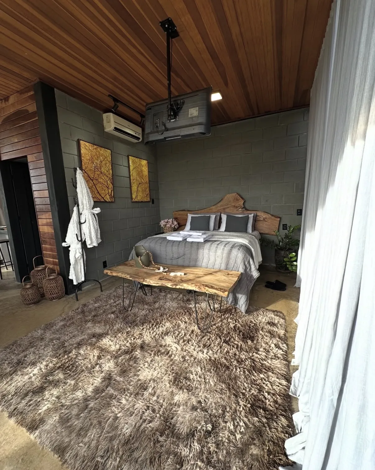 Pensada para proporcionar conforto e privacidade, a cabana oferece uma experiência intimista, ideal para quem busca descanso e conexão com o ambiente ao redor. Cada detalhe valoriza o bem-estar, criando o cenário perfeito para dias leves, marcados por silêncio, paisagens inspiradoras e momentos inesquecíveis.