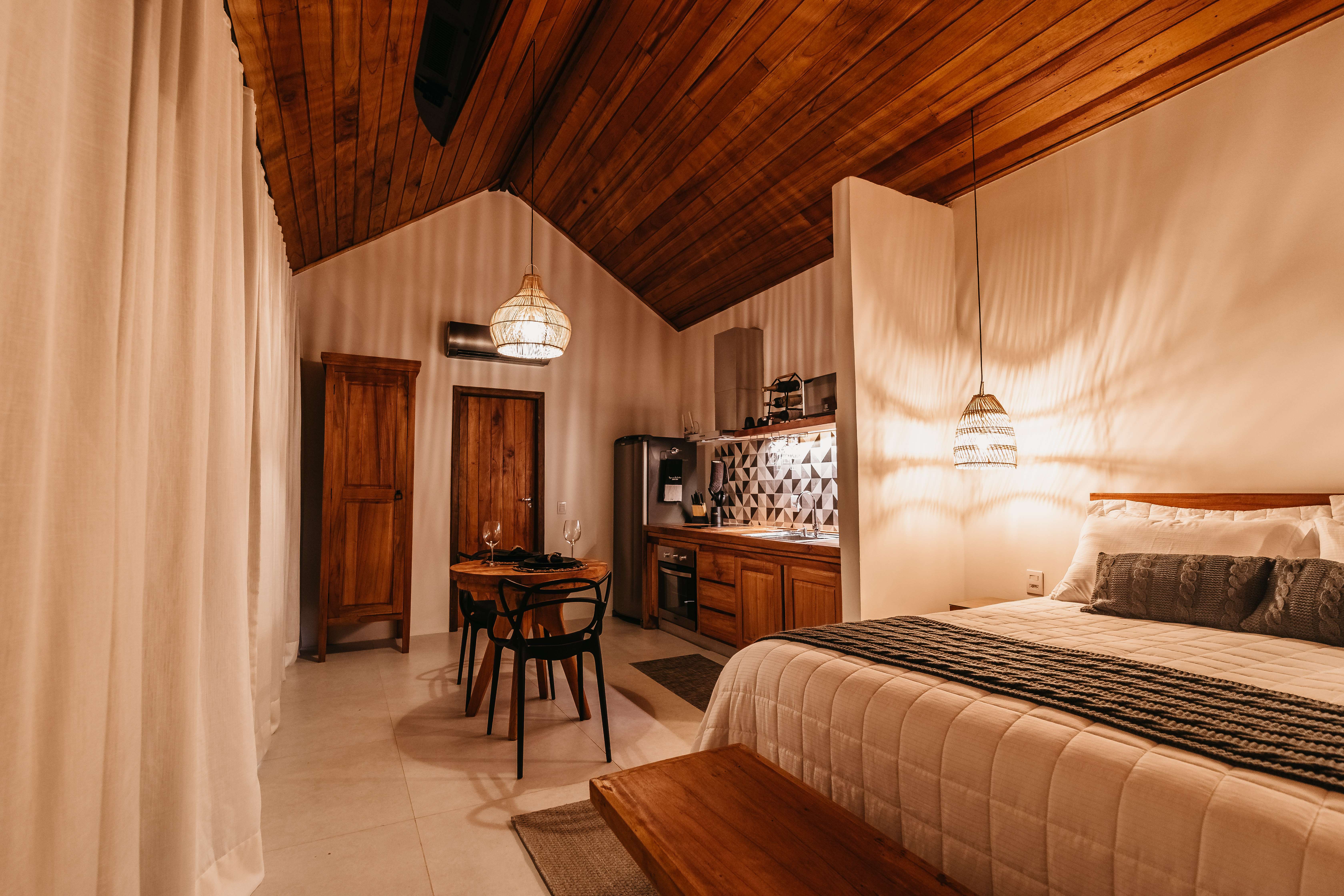 Ar condicionado Secador de cabelo TV a cabo / Smart TV Jacuzzi / Ofurô / Banheira Coberta Frigobar Lareira Máquina de Café Enxoval de Luxo (+ Roupão e Pantufa) Sauna Cozinha Estação de trabalho (mesa e cadeira) Piscina Aquecida ou climatizada Borda Infinita Coberta