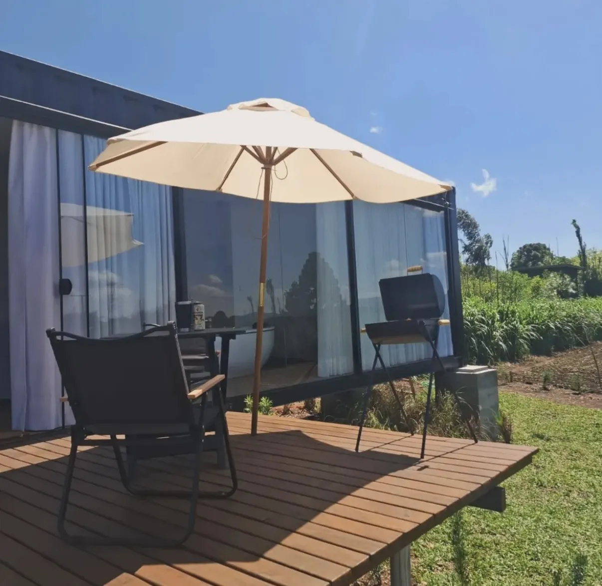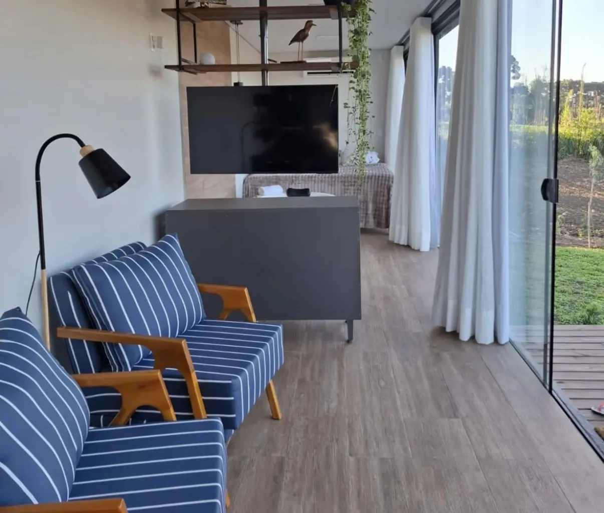 A Cabana Ninho do Quero-Quero é um refúgio que une charme, conforto e conexão com a natureza em um ambiente cuidadosamente pensado para proporcionar bem-estar. O espaço conta com suíte equipada com cama queen, lareira, banheira de hidromassagem, cozinha completa e varanda com vista para o jardim, criando um cenário perfeito para relaxar e viver momentos especiais.