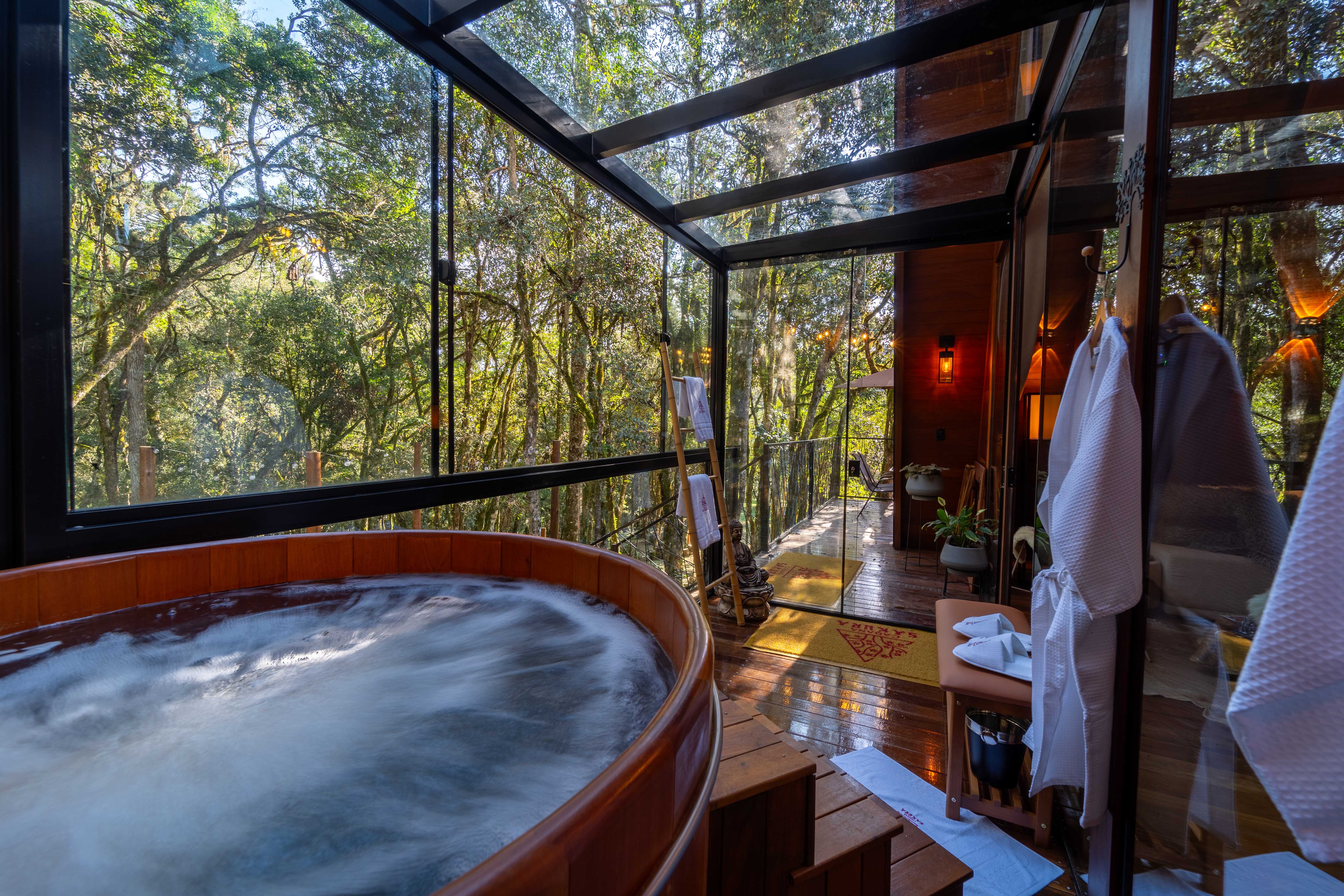 Ar condicionado Secador de cabelo TV a cabo / Smart TV Jacuzzi / Ofurô / Banheira Coberta Frigobar Lareira Máquina de Café Enxoval de Luxo (+ Roupão e Pantufa) Sauna Cozinha Estação de trabalho (mesa e cadeira) Piscina Aquecida ou climatizada Borda Infinita Coberta