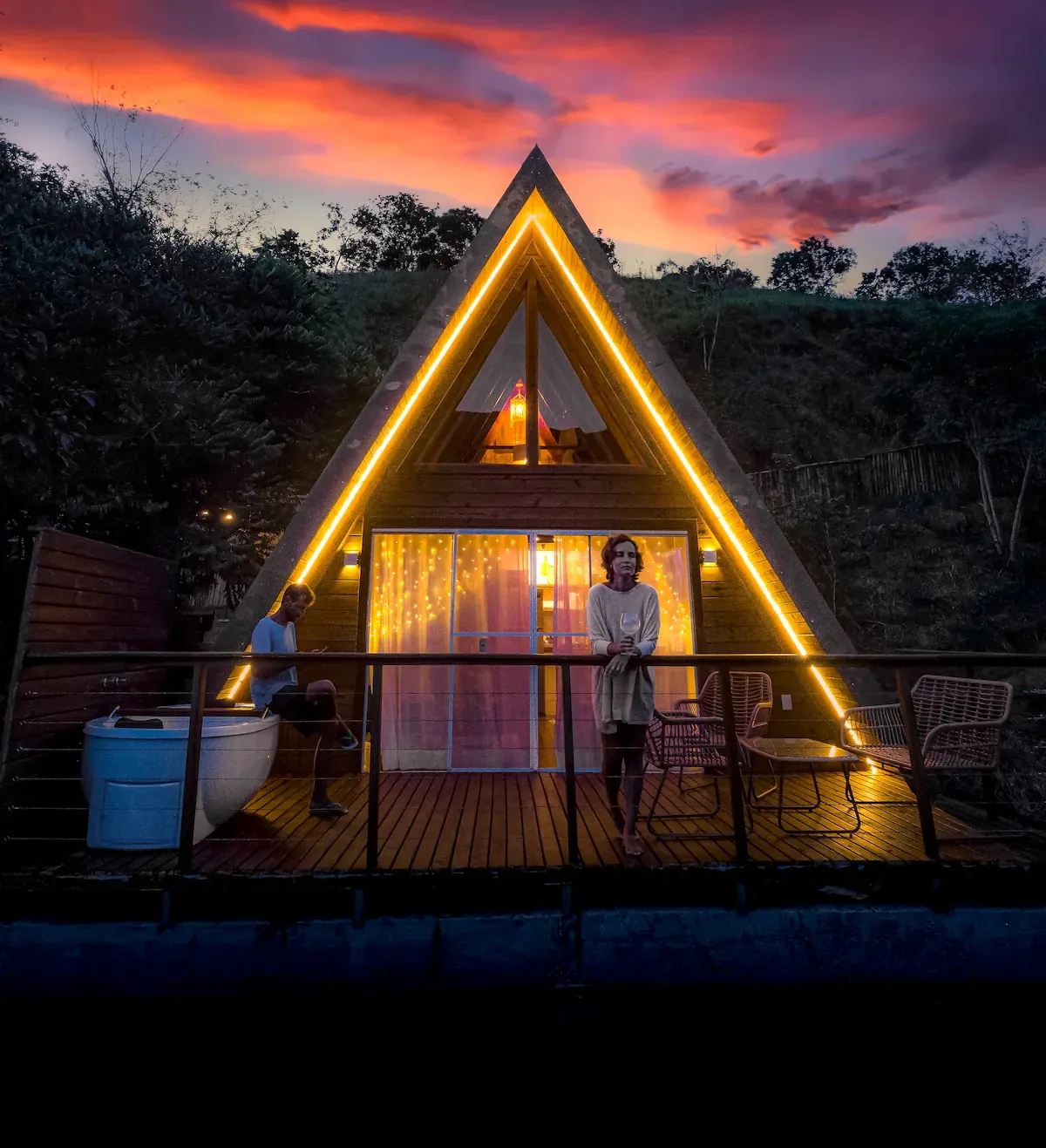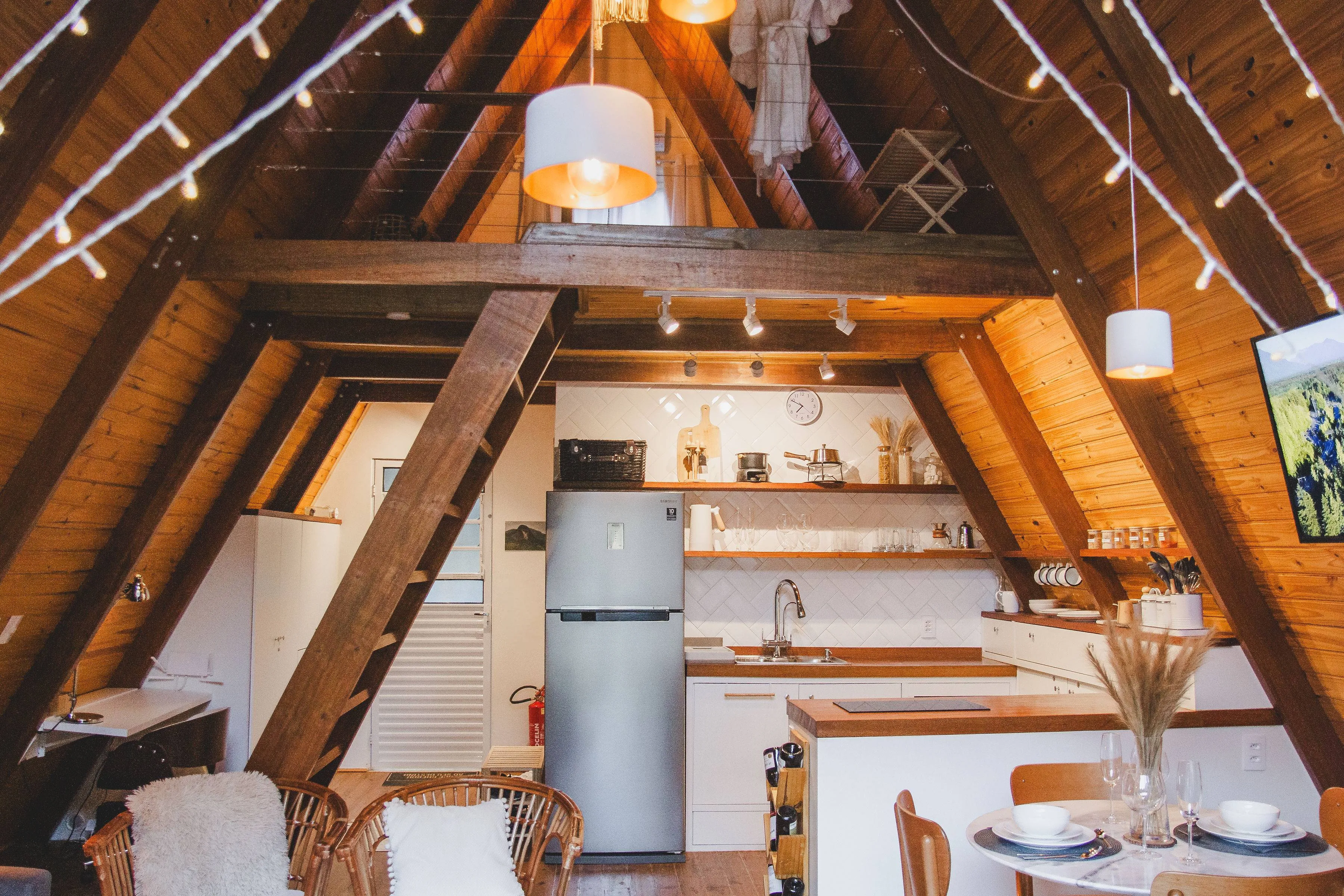 O estilo arquitetônico em A-Frame, ainda muito raro no Brasil, fica evidente no projeto inspirado nas origens Nórdicas e Escandinavas. Em madeira, decorada em boho chic e com comodidades de um luxuoso glamping, busca oferecer uma experiência de hospedagem que pretende surpreender em cada detalhe.