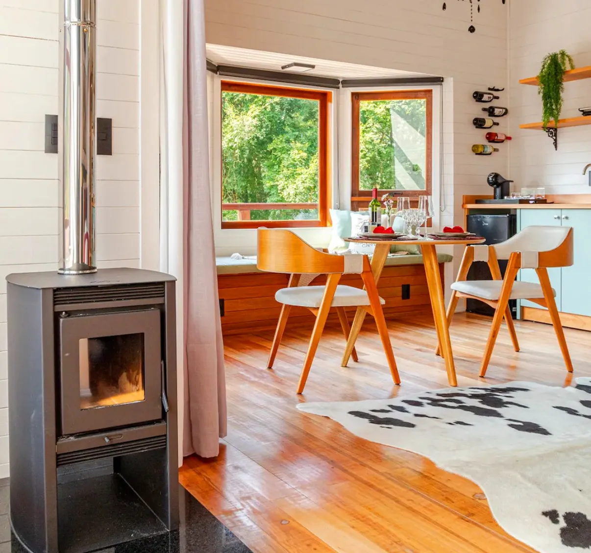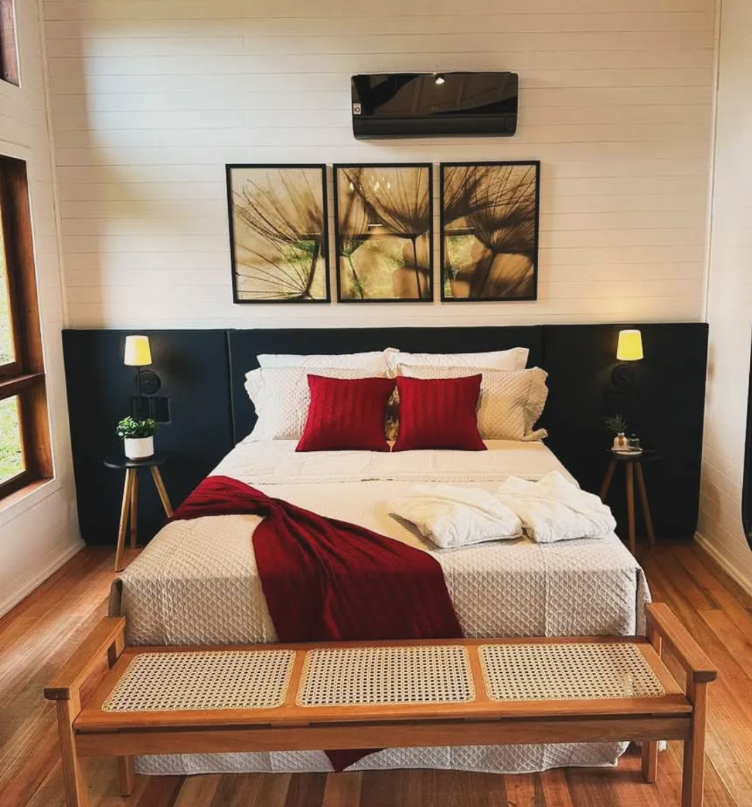 A Villa Serena oferece uma experiência de hospedagem pensada para casais que buscam conforto, privacidade e contato direto com a natureza. O espaço conta com uma suíte acolhedora equipada com cama box king, lareira, banheira de hidromassagem e um ambiente cuidadosamente decorado para criar momentos únicos. A cozinha completa proporciona praticidade, com micro-ondas, sanduicheira, chaleira elétrica, fogão, frigobar e utensílios, além de uma charmosa cafeteira com cápsulas de cortesia.