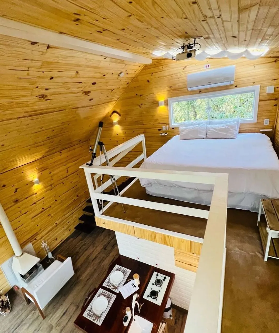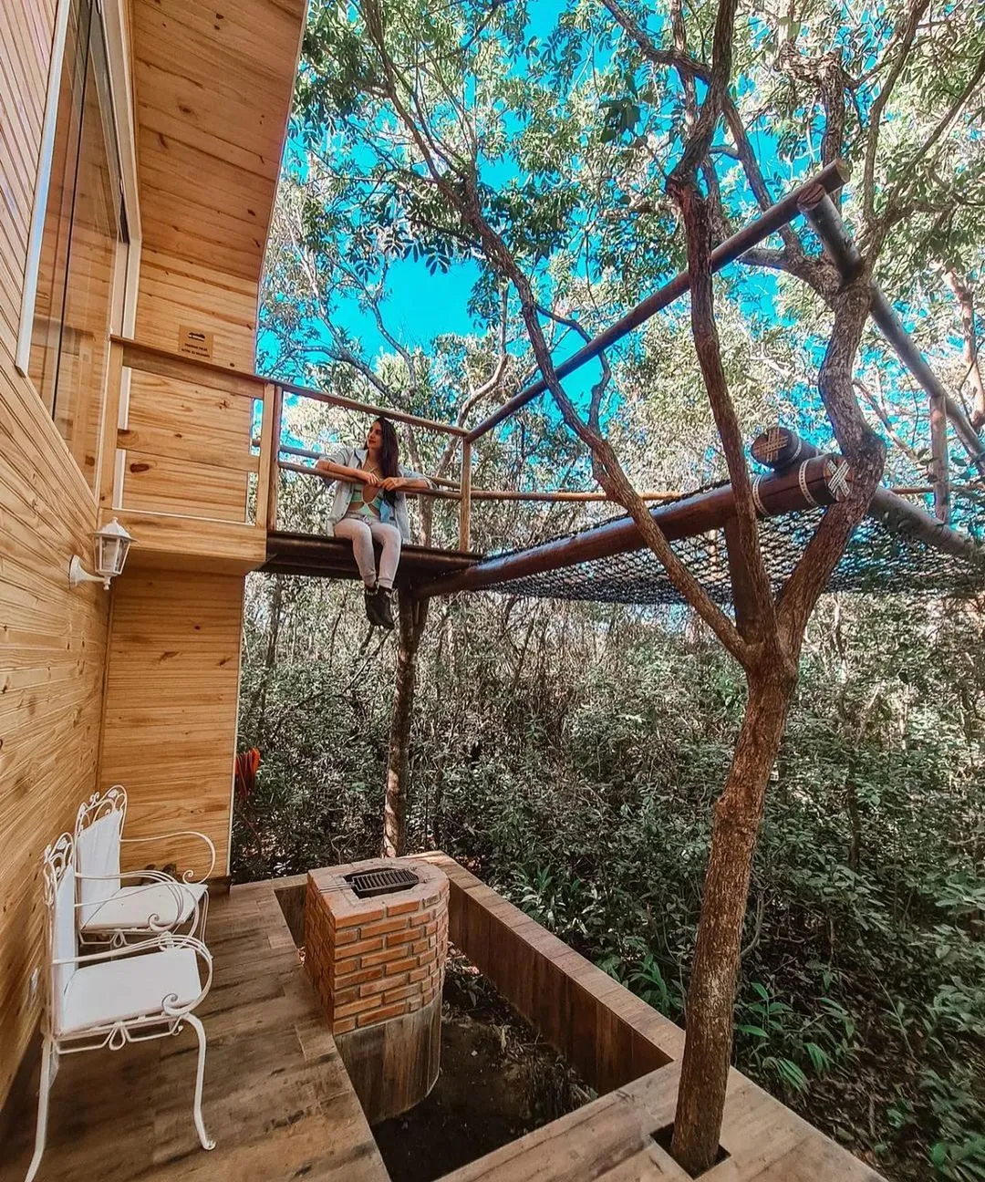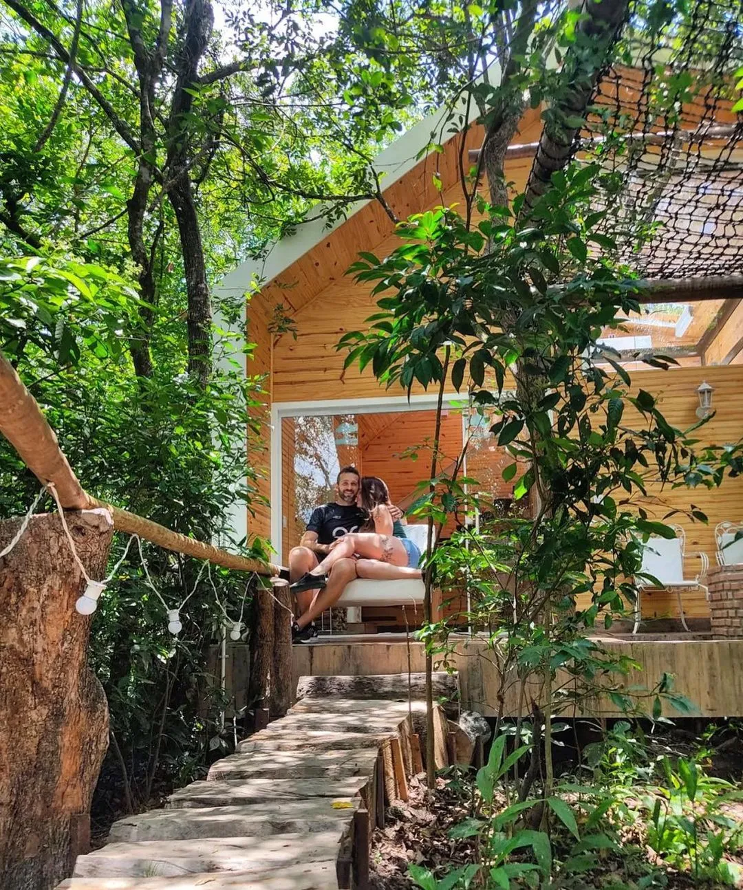 Viva a experiência de dormir olhando as estrelas, ande sobre uma rede horizontal posicionada em meio à copa das árvores, o banheiro tem paredes de vidro, a cortina automática se transforma em um cinema.