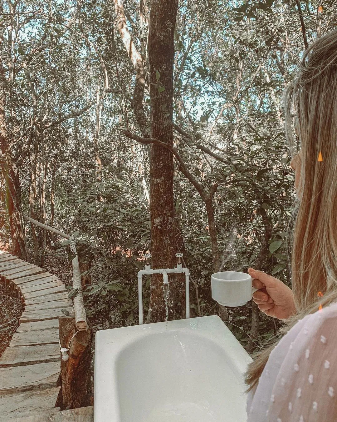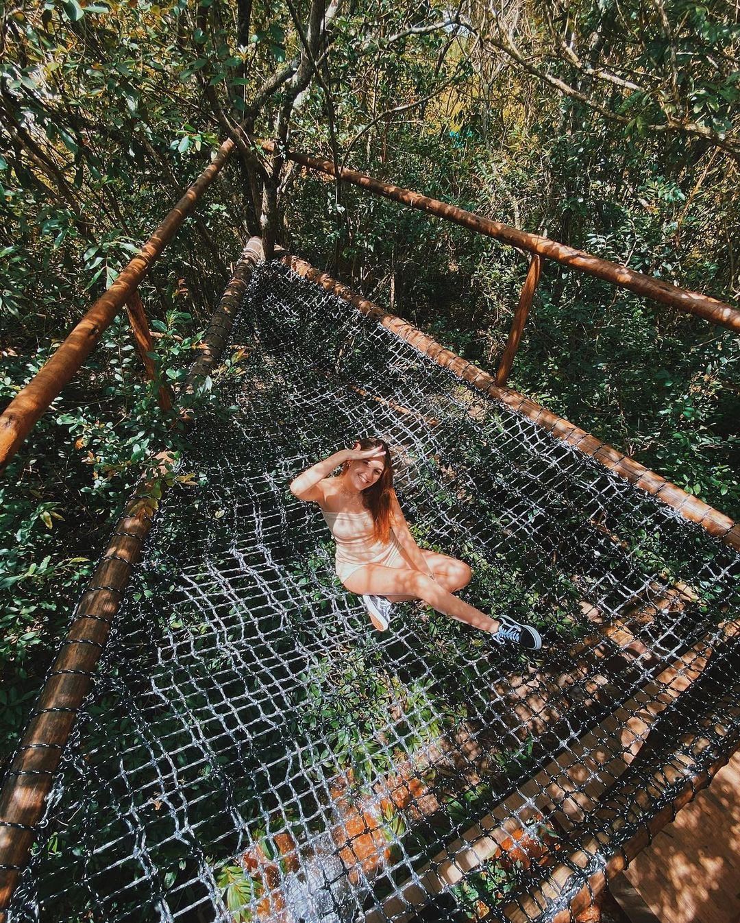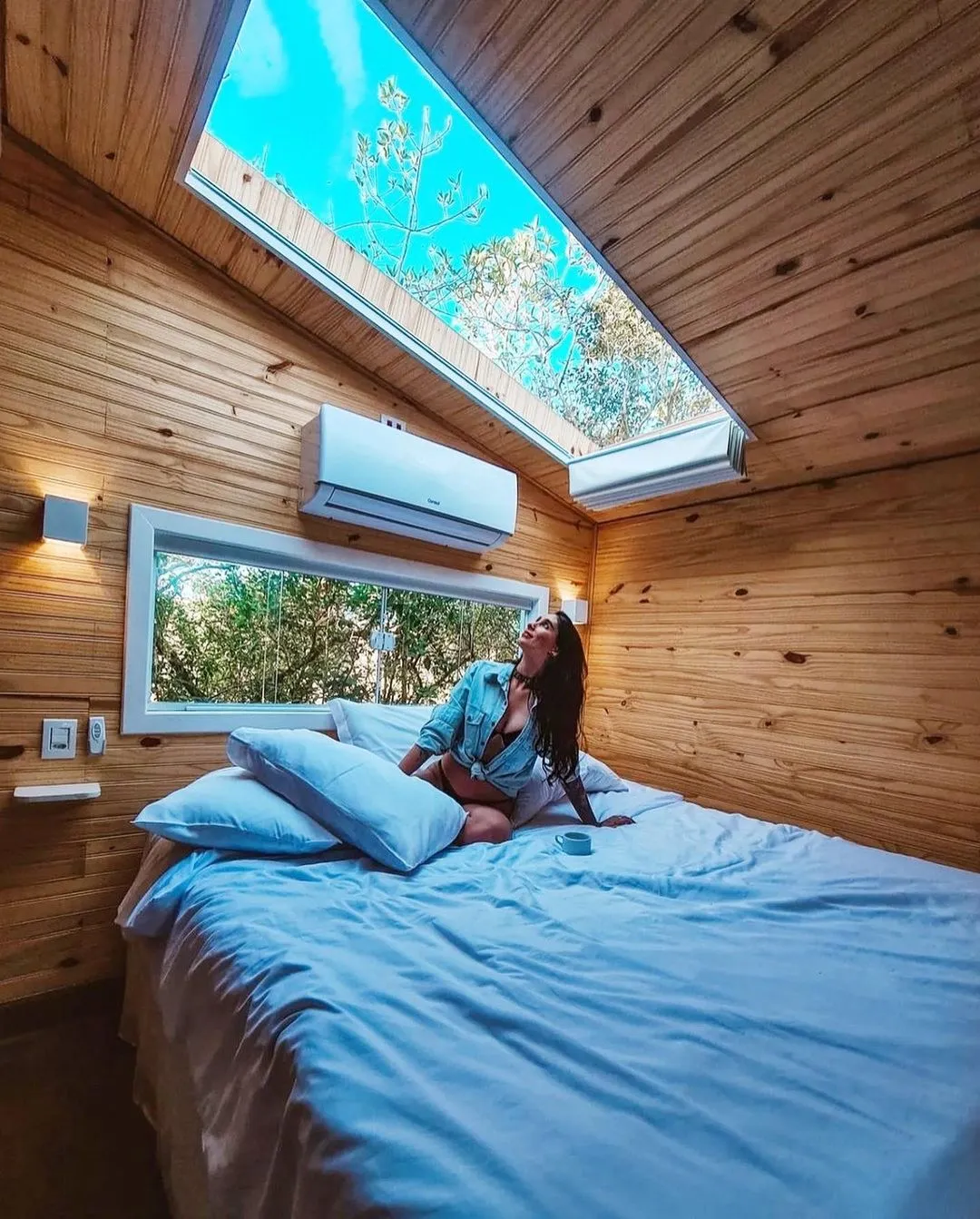Viva a experiência de dormir olhando as estrelas, ande sobre uma rede horizontal posicionada em meio à copa das árvores, o banheiro tem paredes de vidro, a cortina automática se transforma em um cinema.