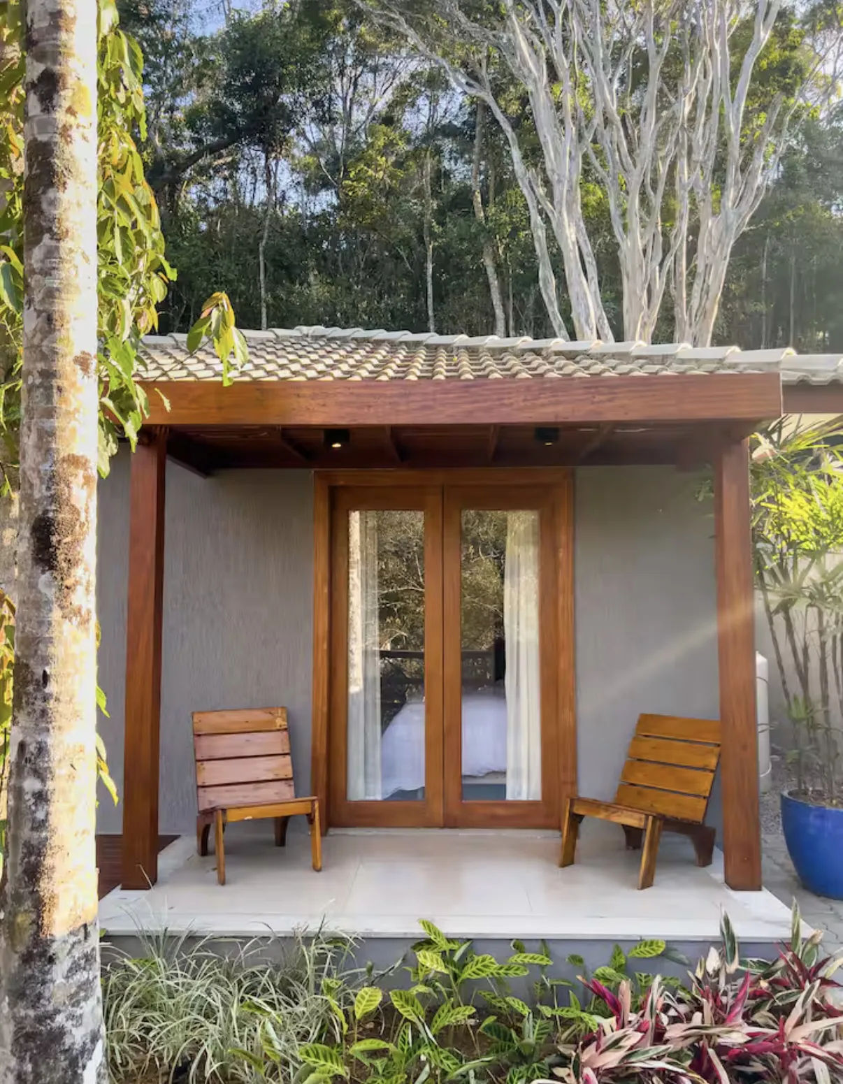 A Cabana da Serra é uma casa linear de alto padrão, construída no estilo rústico de cabana, ideal para quem busca conforto e contato com a natureza. Acomoda até 6 pessoas com tranquilidade e é composta por 3 quartos: uma suíte com cama de casal, um quarto com cama de casal e outro com duas camas de solteiro.