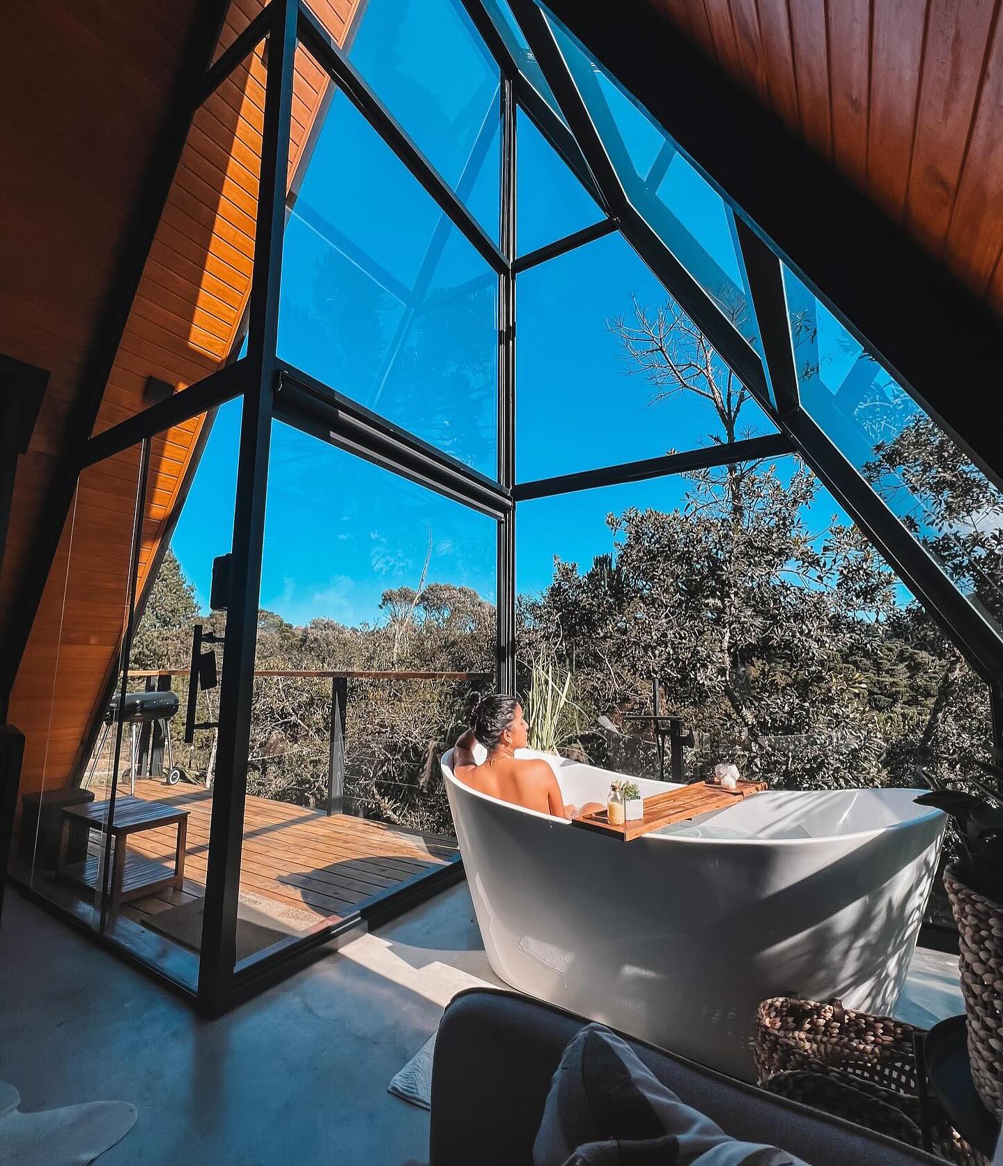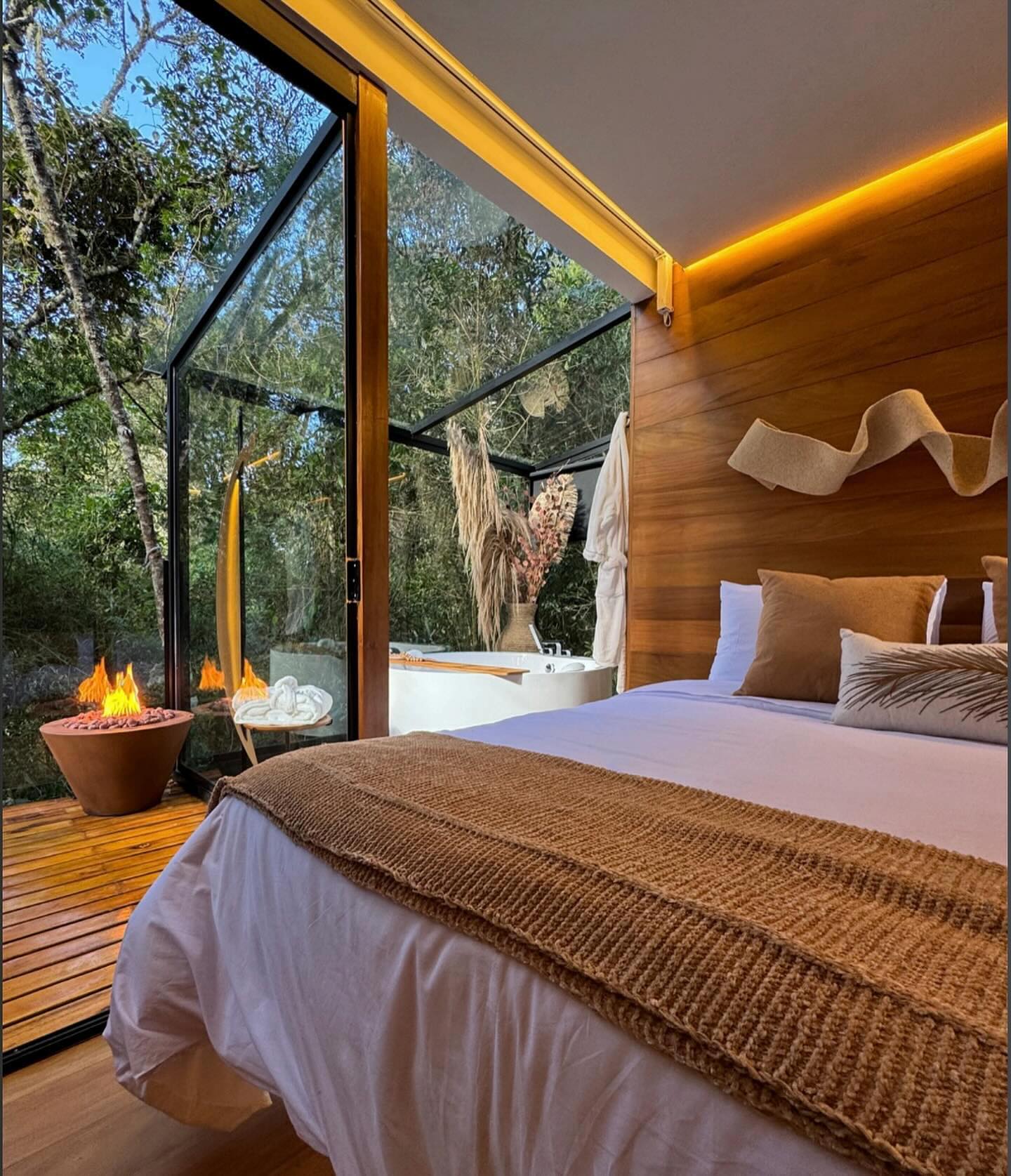 Ar condicionado Secador de cabelo TV a cabo / Smart TV Jacuzzi / Ofurô / Banheira Coberta Frigobar Lareira Máquina de Café Enxoval de Luxo (+ Roupão e Pantufa) Sauna Cozinha Estação de trabalho (mesa e cadeira) Piscina Aquecida ou climatizada Borda Infinita Coberta