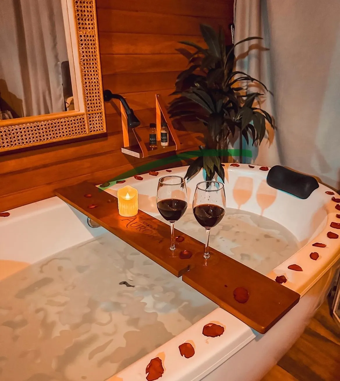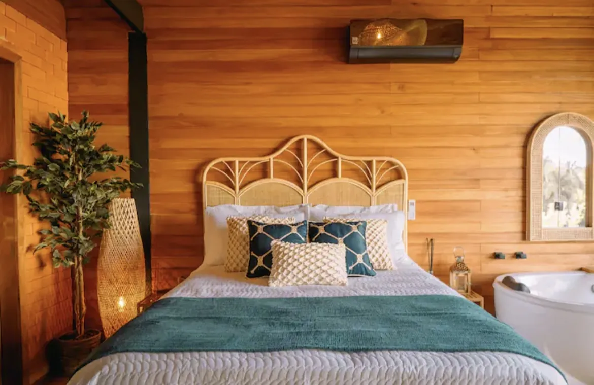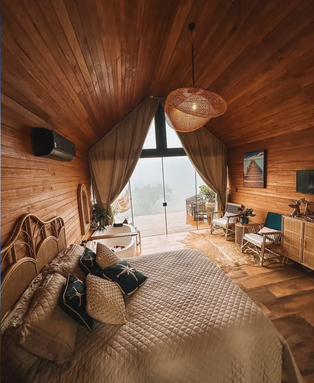 Cabana muito confortável e bem equipada, onde os hóspedes desfrutarão de momentos únicos e inesquecíveis! Possui uma banheira de imersão com uma bela vista para a Lagoa e o horizonte, proporcionando uma hospedagem deliciosa e aconchegante.