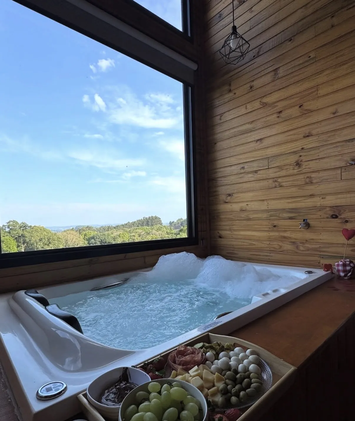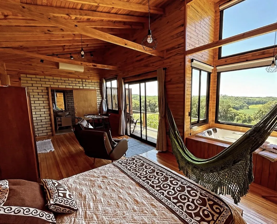 As cabanas contam com climatização e banheira para casal, criando o cenário perfeito para relaxar e aproveitar a estadia a dois. A ambientação aconchegante, aliada à estrutura cuidadosamente planejada, transforma cada momento em uma experiência especial, marcada por charme, privacidade e sensações inesquecíveis.