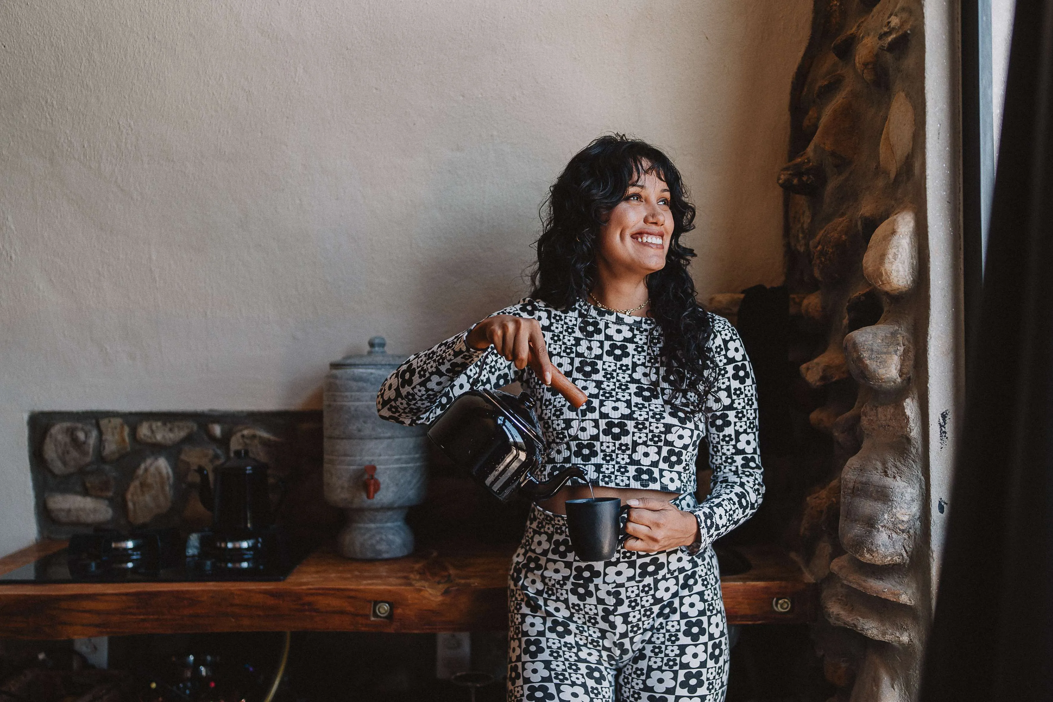 A experiência se completa com uma agrofloresta viva, onde os hóspedes podem colher hortaliças frescas e ervas medicinais para uso na cozinha, trazendo a terra diretamente para a mesa.