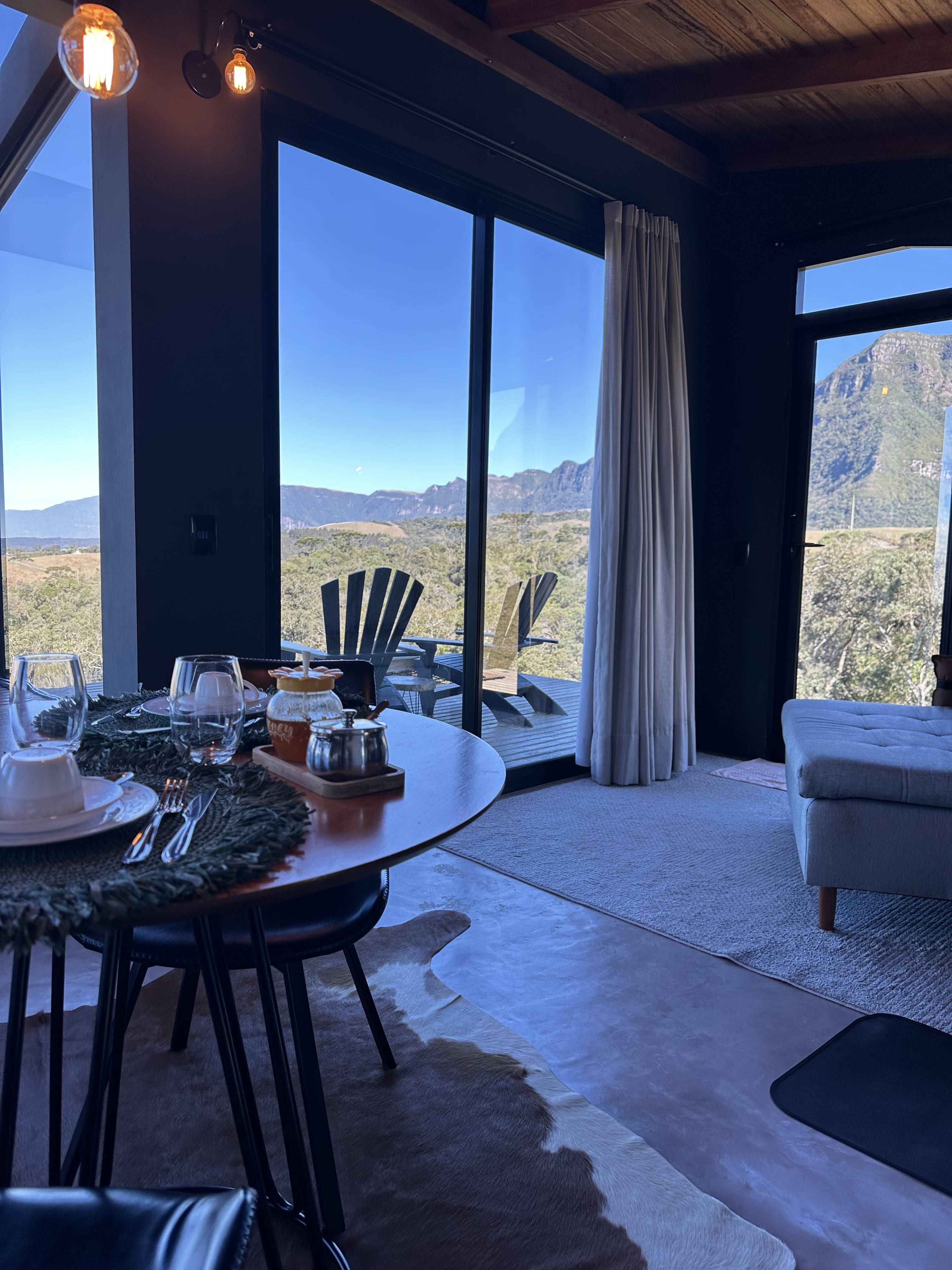 Uma cabana exclusiva e completamente privativa, isolada no topo das montanhas e aos pés da Serra, a 1037 metros de altitude, oferecendo uma vista deslumbrante. A união perfeita entre o rústico e o moderno, onde cada detalhe foi pensado para uma experiência única.