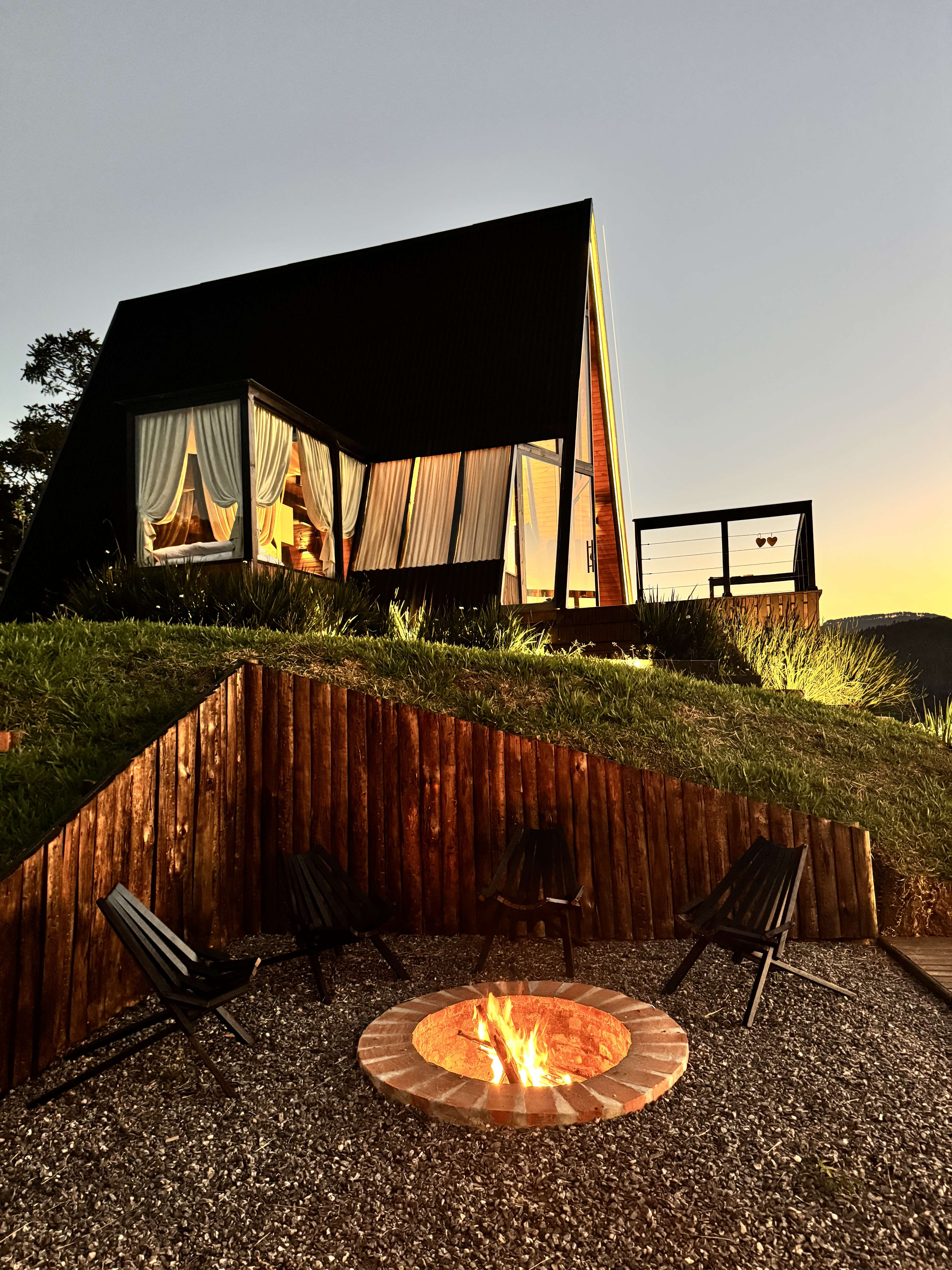 • Fogo de chão externo: ideal para conversas ao entardecer e noites sob o céu estrelado.