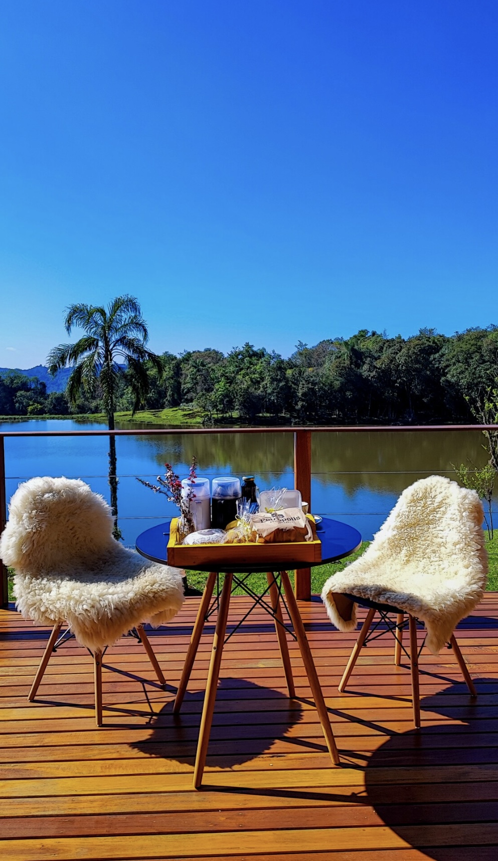 A suíte dispõe de cama queen, ar-condicionado e uma banheira de hidromassagem com cromoterapia, perfeita para relaxar enquanto aprecia a paisagem. O banheiro é equipado com chuveiro a gás, secador de cabelo, roupões e enxoval de cama e banho de alta qualidade. O deck externo, mobiliado com cadeiras confortáveis, oferece uma vista deslumbrante para o lago e para a vegetação ao redor, tornando cada momento ainda mais especial e memorável.