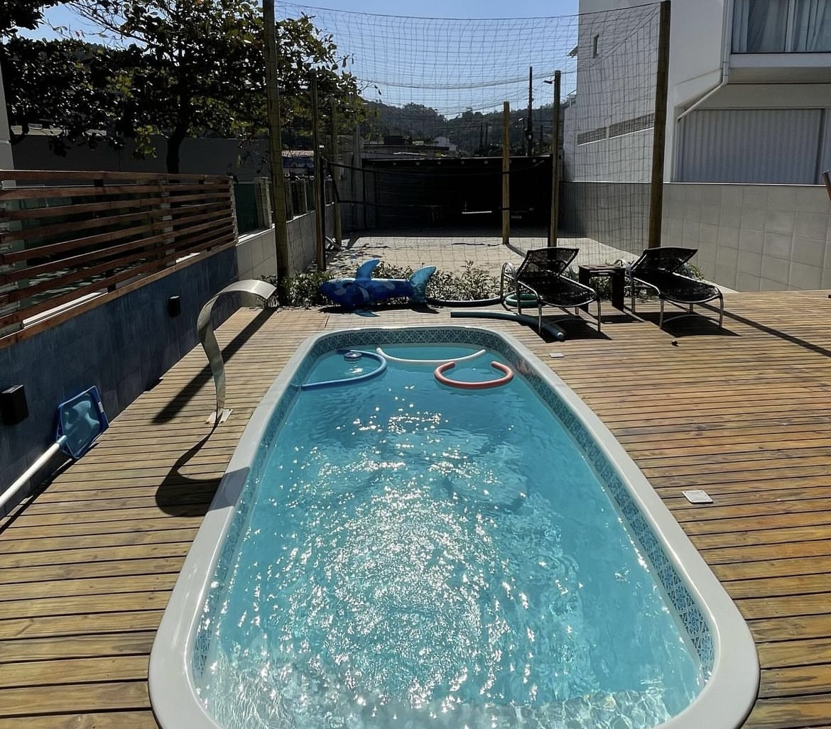 Pé na areia, a Casa Caminho da Praia hospeda confortavelmente até 16 pessoas! São 6 quartos, quadra de areia, piscina, jacuzzi e garagem para 8 carros.